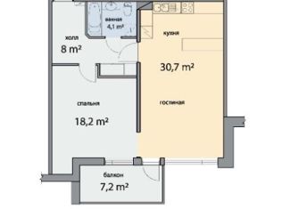 Общая площадь: 30 м2
