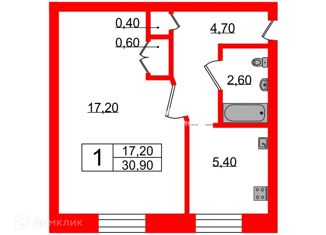 Общая площадь: 30.9 м2