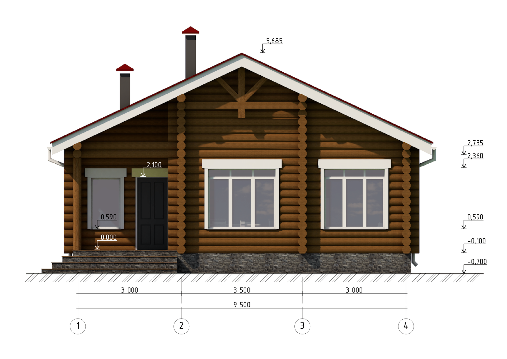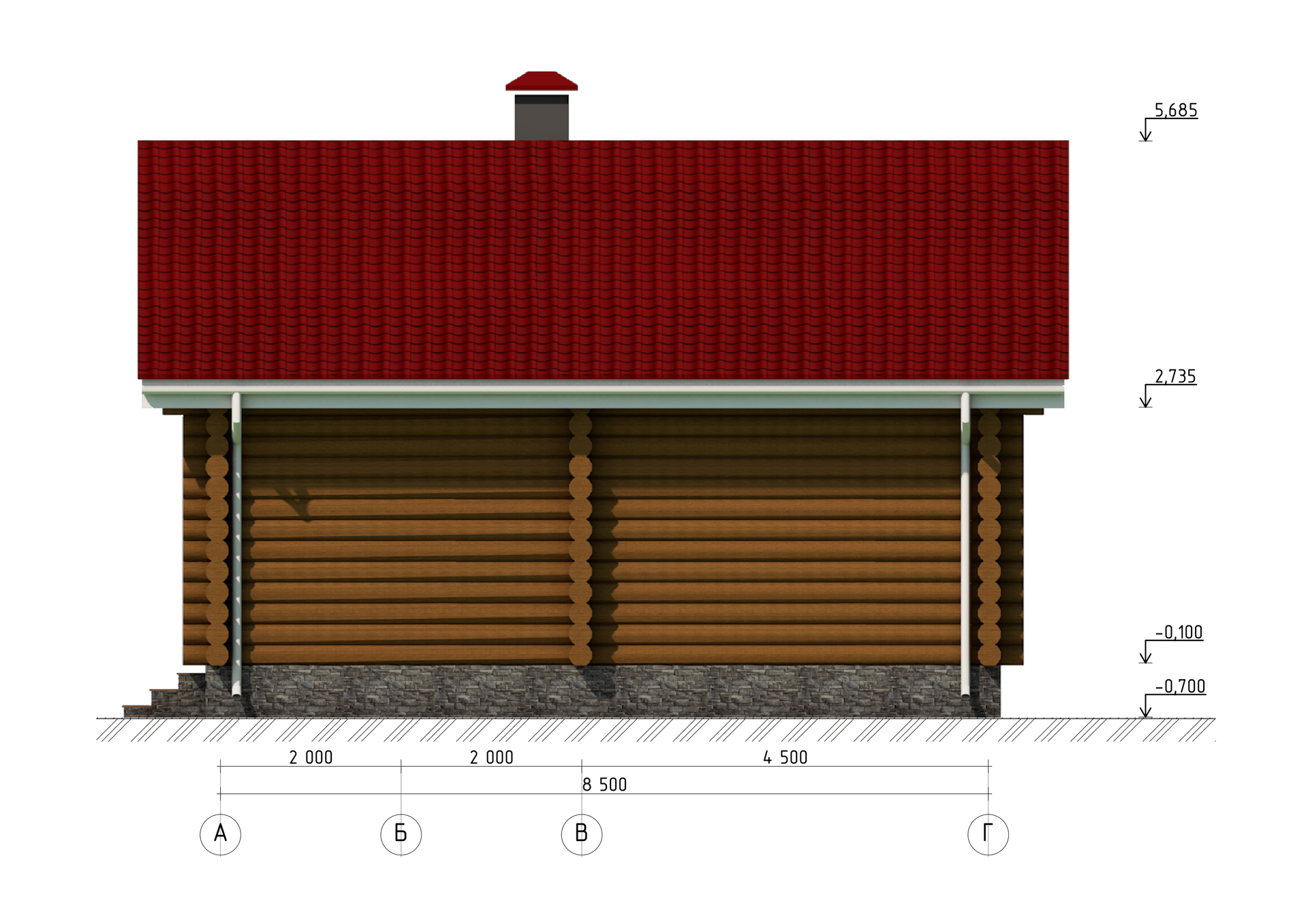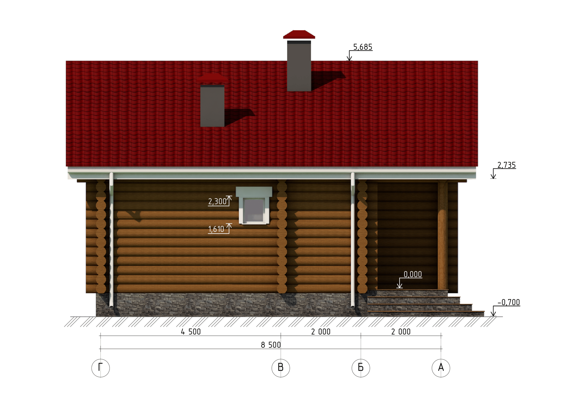 Высота дома по коньку: 5,68 м.