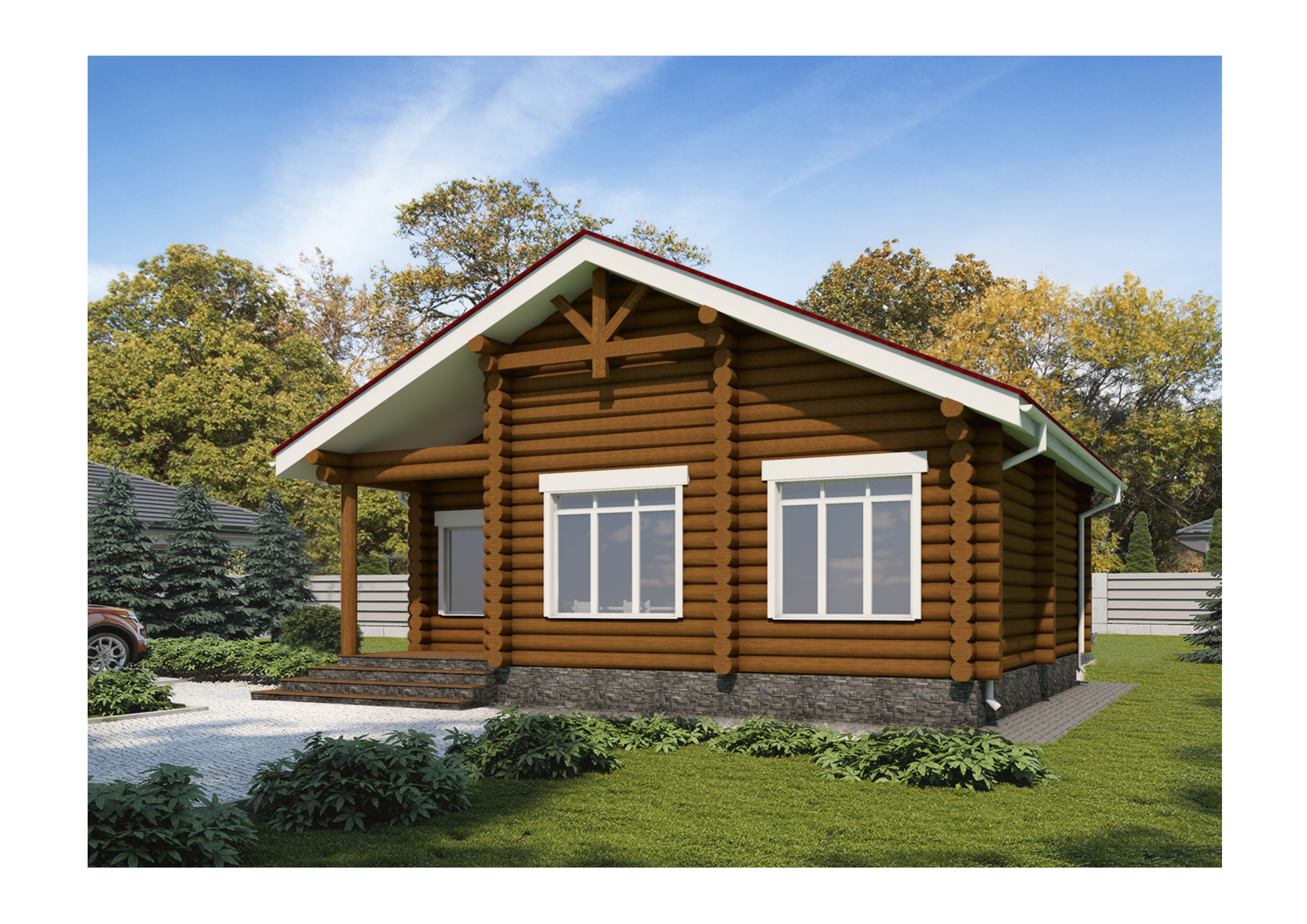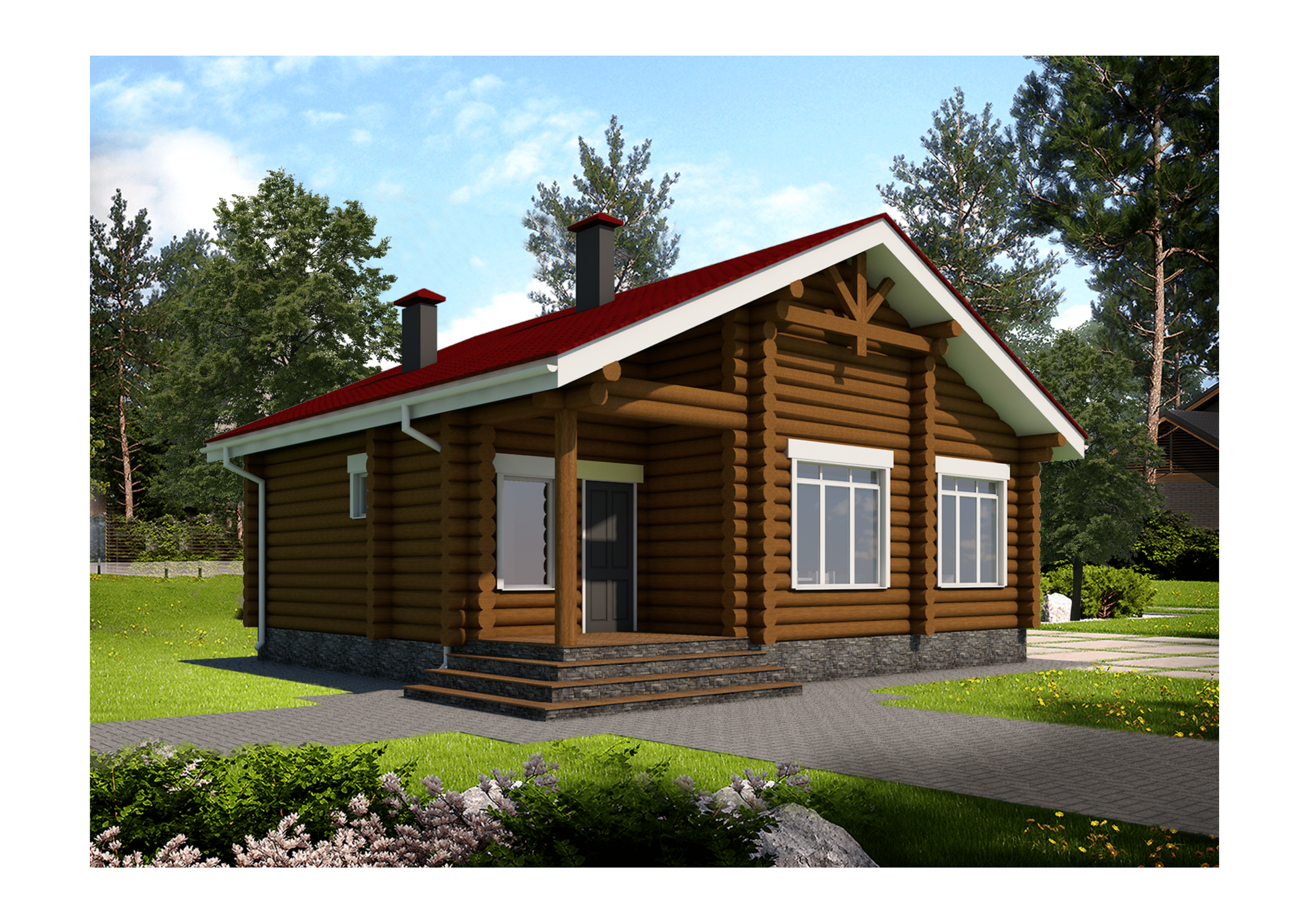 •    Несущие стены: Рубленное бревно d280-300 мм. (массив сосны).