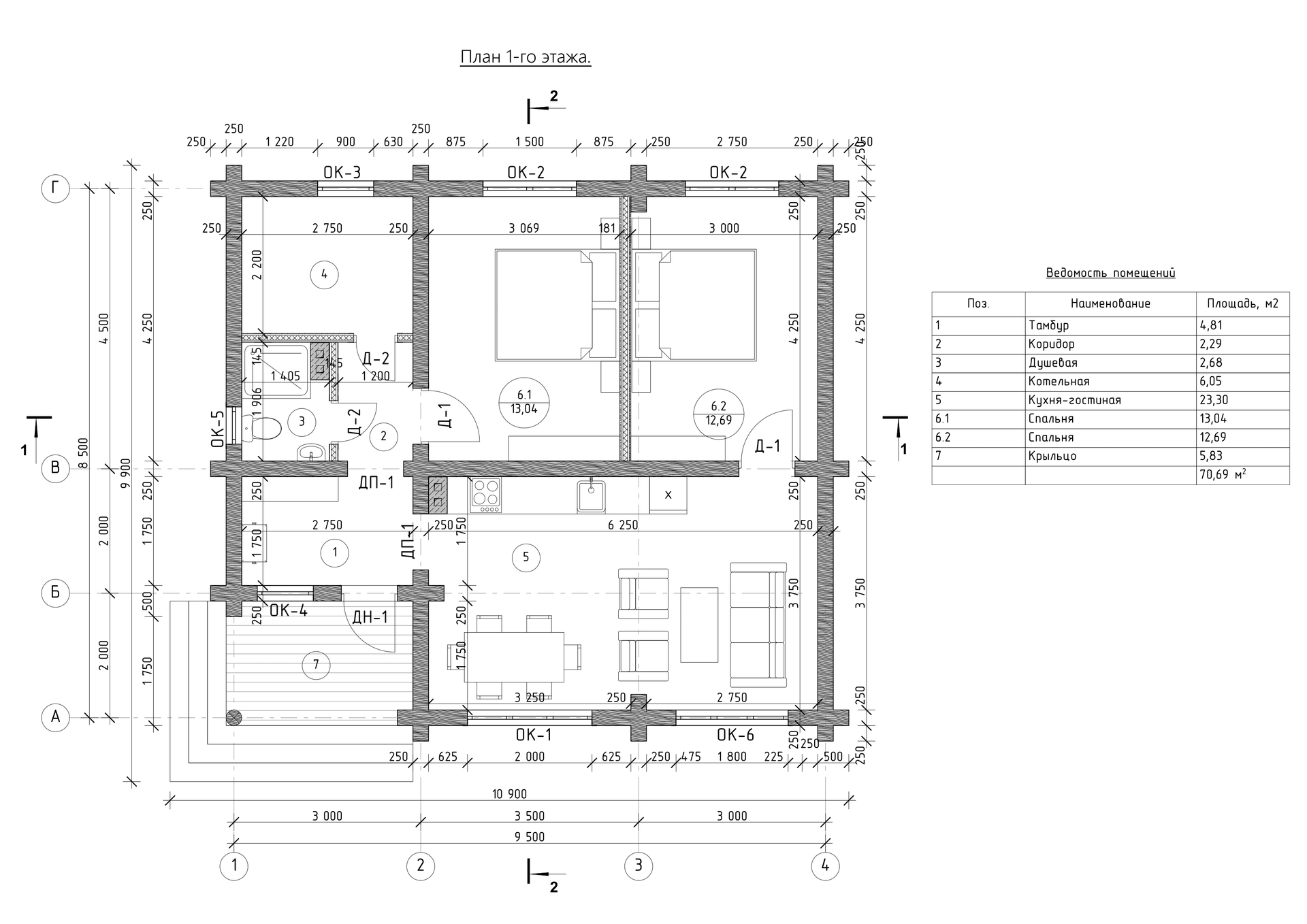 Общая площадь: 70,69 м2