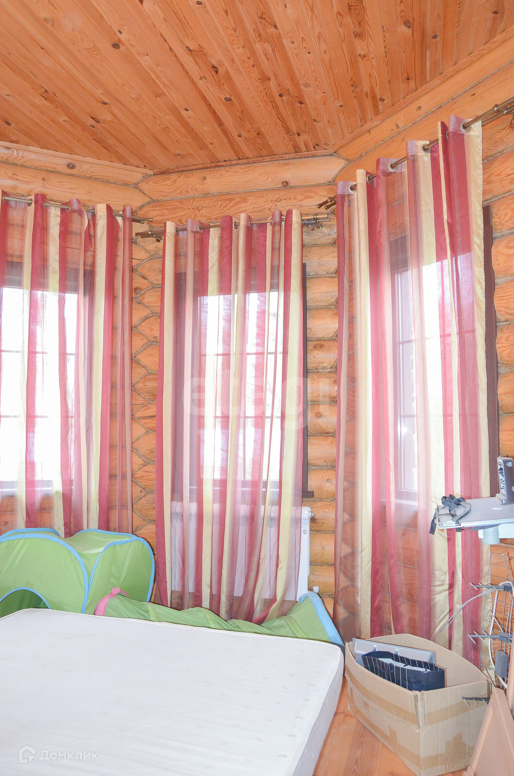 Дом построен из элитного, отборного оцилиндрованного бревна. На первом этаже гостинная, кухня, санузел, котельная. На втором этаже две спальни, в каждой имеется свой санузел. На третьем этаже одна комната-беседка.