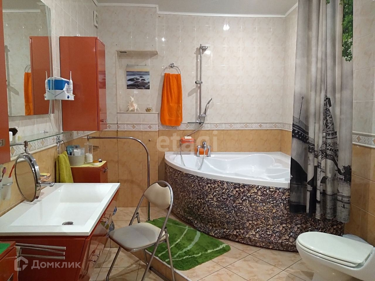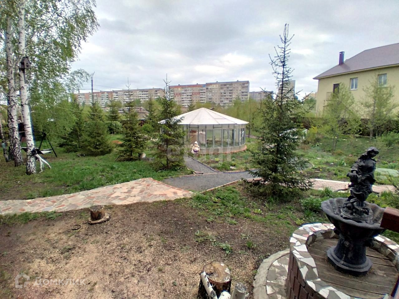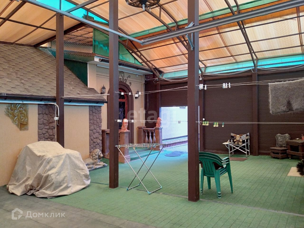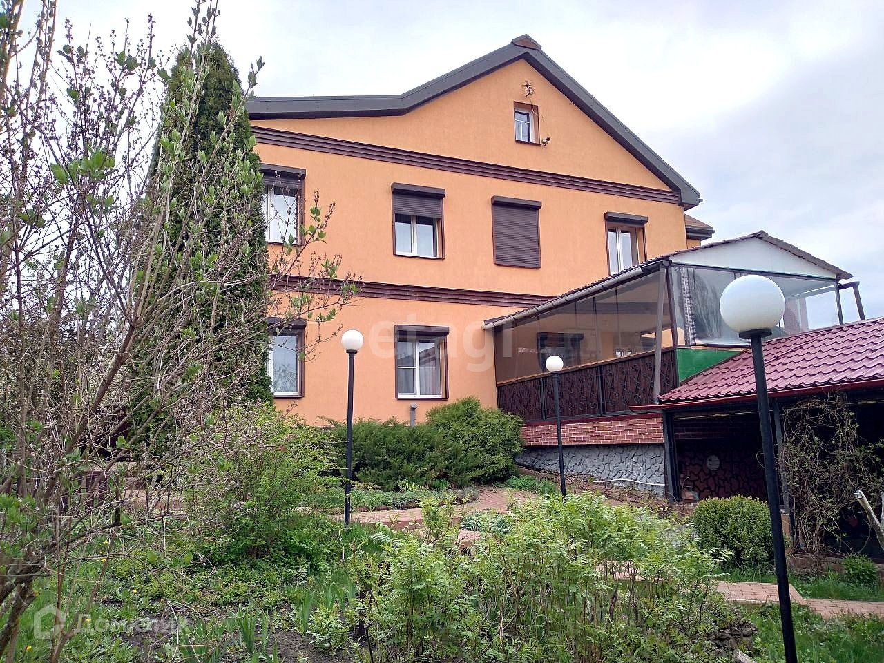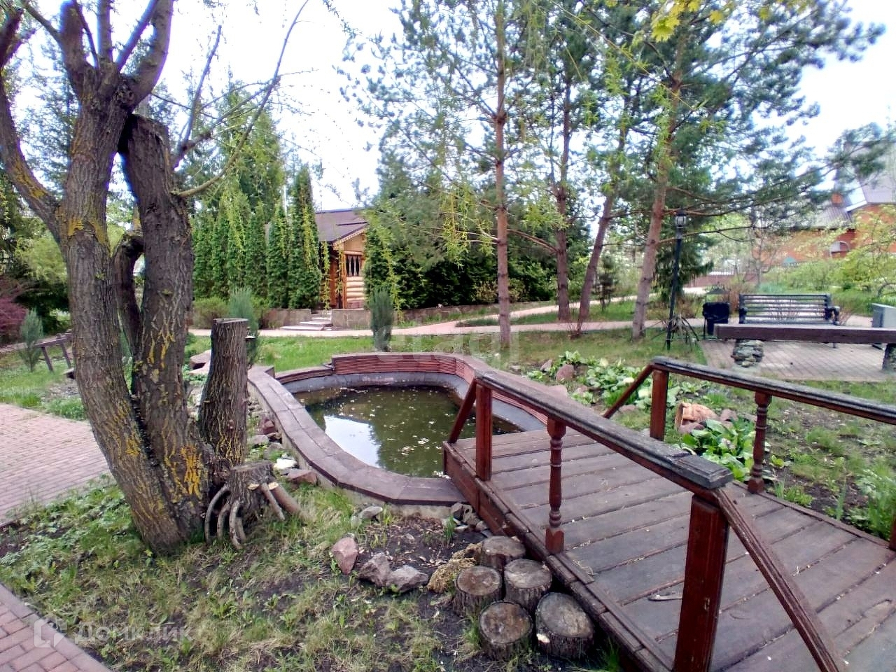 С тыльной стороны дома расположена открытая/закрытая терраса с видом на ландшафтный участок, включающий в себя деревья и кустарники более 420 единиц, в том числе плодово-ягодные – свыше 90 единиц, листопадные более 200 единиц, вечно зелёные более 130 единиц, искусственный пруд, арт-объекты, лавочки и иные элементы. Кирпичный комплекс казан-мангал для любителей приготовить шашлык. Отдельно стоящая баня размером 6,5X6 с русской парилкой и дровяной печью. В бане имеются следующие помещения: комната отдыха, помывочная с тропическим душем и обливным устройством, парная, санузел. В комнате отдыха установлена отдельная дровяная печь для отопления в холодное время года. К бане примыкает терраса площадью 92 кв.м. Под открытым воздухом можно окунуться в купель. Возле бани расположен колодец. На территории протекает ручеёк, берега которого облагорожены. На территории имеется погреб, шатровая теплица, а также располагается хоз.постройка для хранения инвентаря. Гараж располагает 2 парковочных места, с автоматическими воротами. В шаговой доступности остановки общественного транспорта, рынок, школа, детский сад.