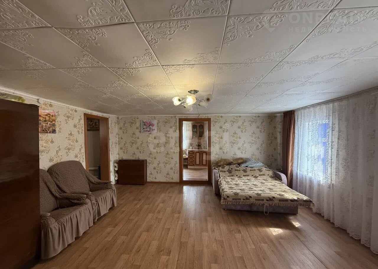 Сам дом бревенчатый, пятидесятых годов, просто в идеальном состоянии! Пол — линолеум, не скрипит, на окнах стеклопакеты… Вообще состояние видно и на фото.