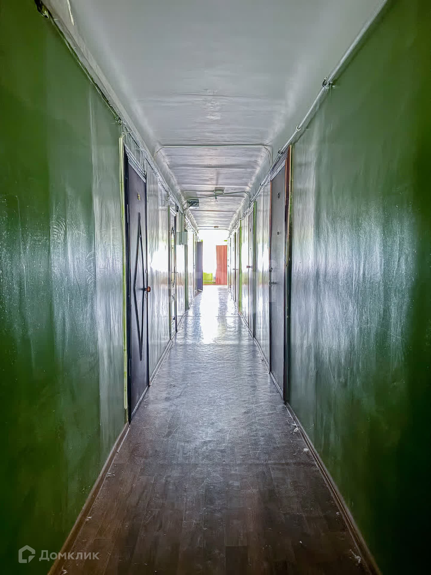 В комнате косметический ремонт, окно пластиковое, железная дверь. На этаже общая кухня, два туалета, сушилка, две комнаты умывания, душевые комнаты на первом этаже.
