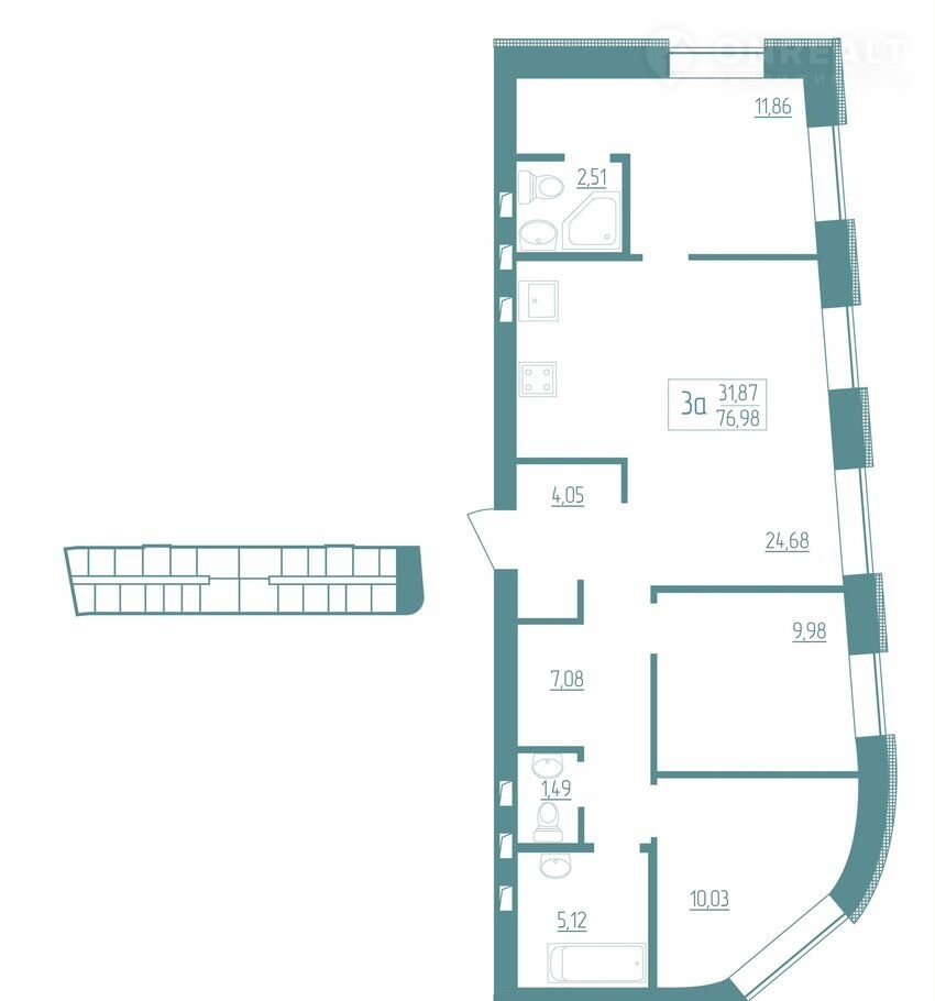 Oбщaя площадь 76,98 кв.м.