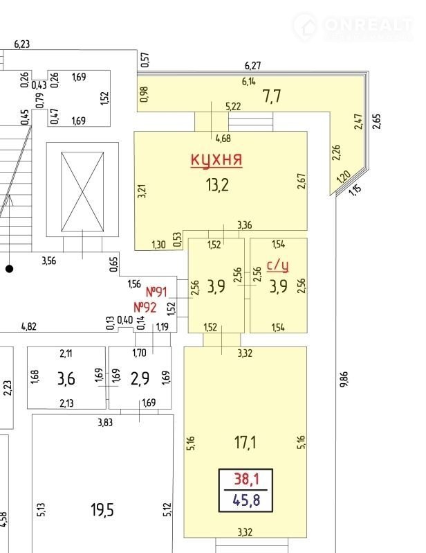 Общая площадь 45.8 м2