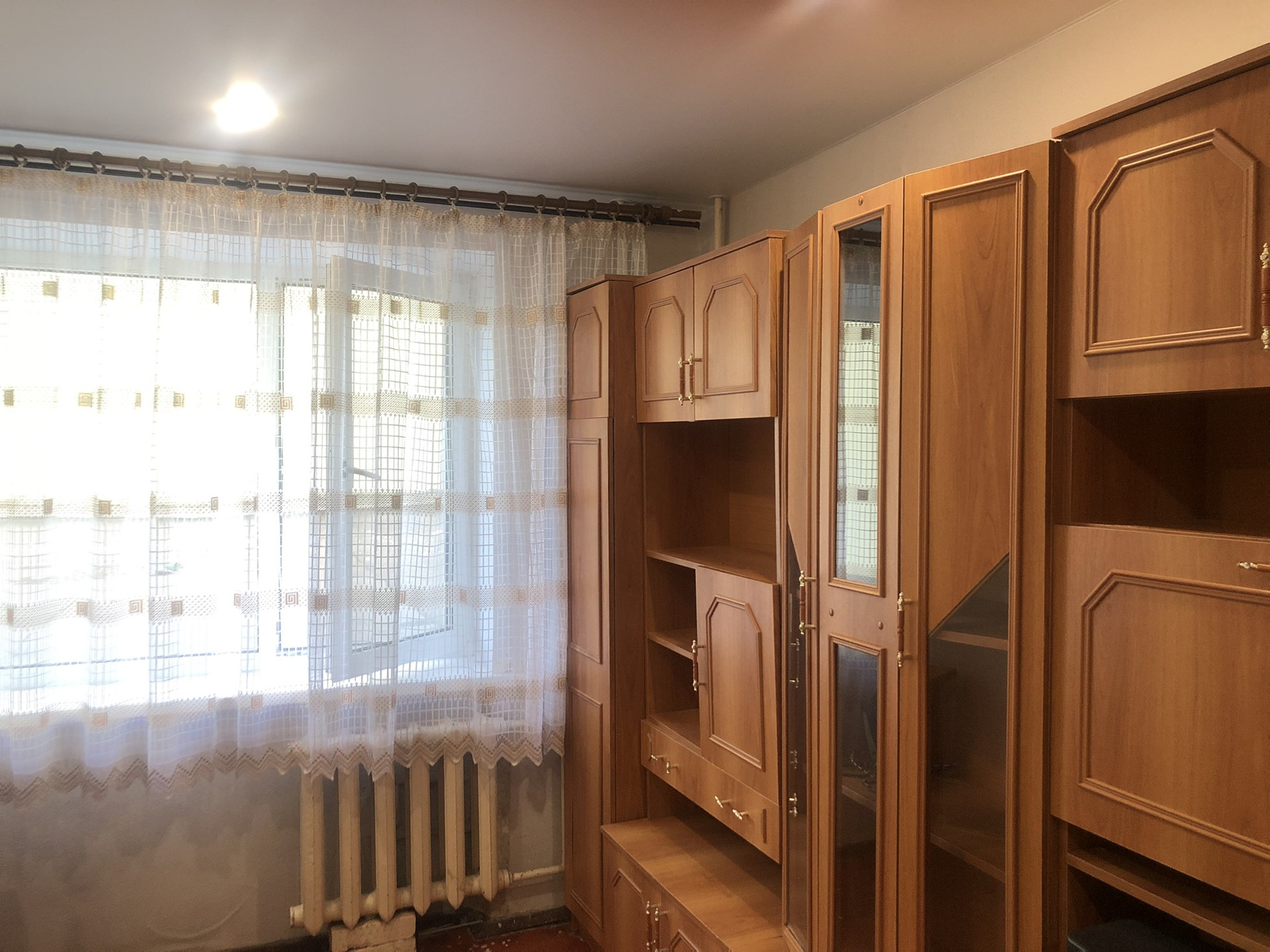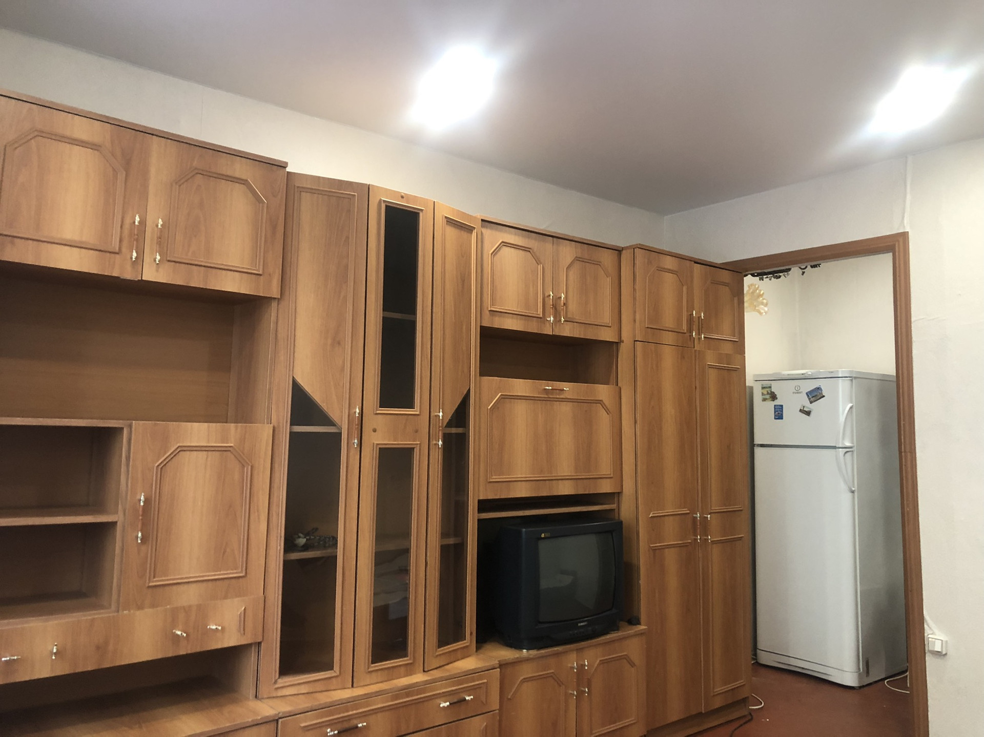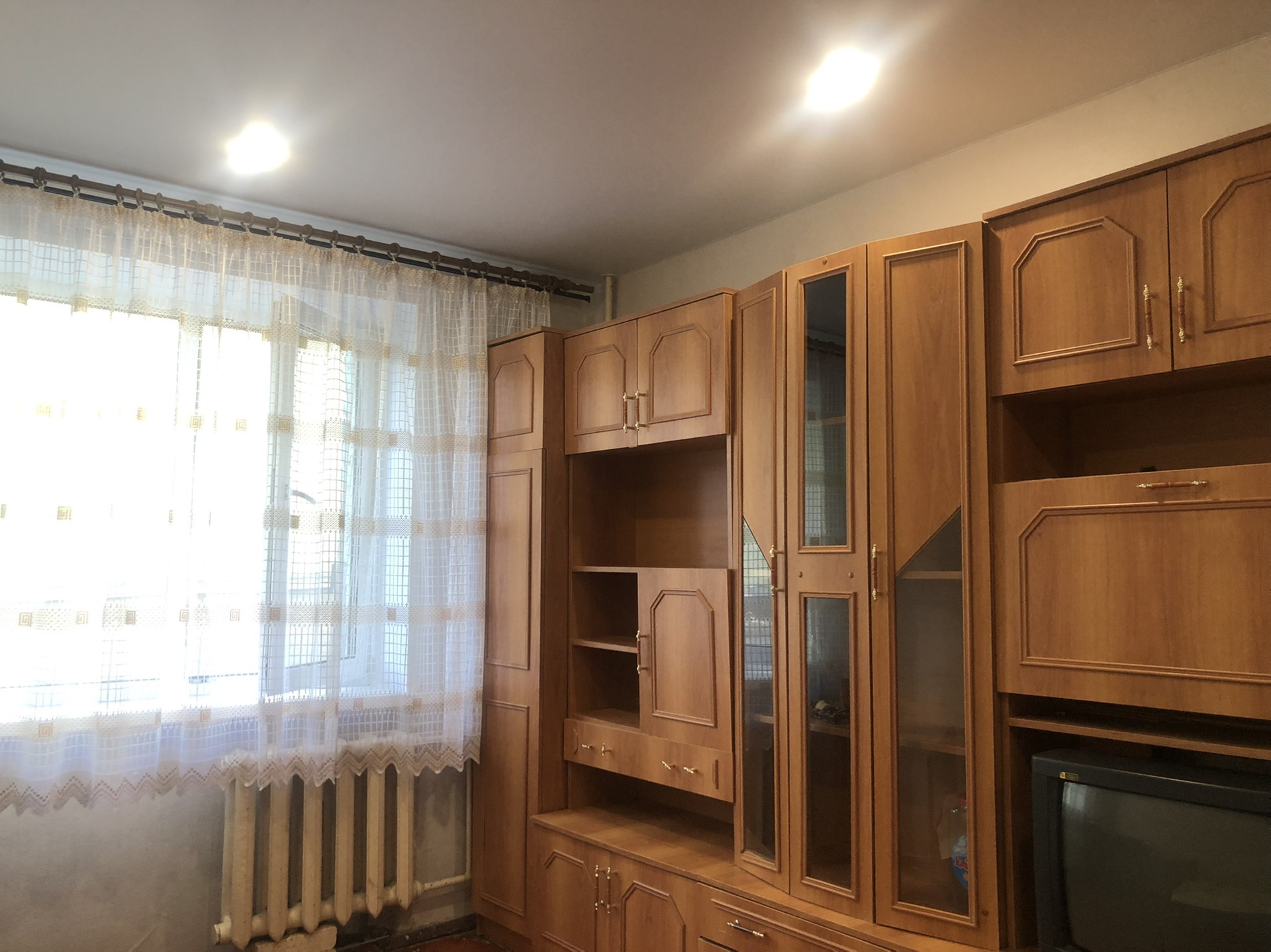 В комнату проведена вода под стиральную машинку, натяжные потолки, пластиковое окно. Комната разделена под небольшую кухню. Вся мебель и техника(холодильник, стиральная машинка, телевизор) остаётся в комнате.
