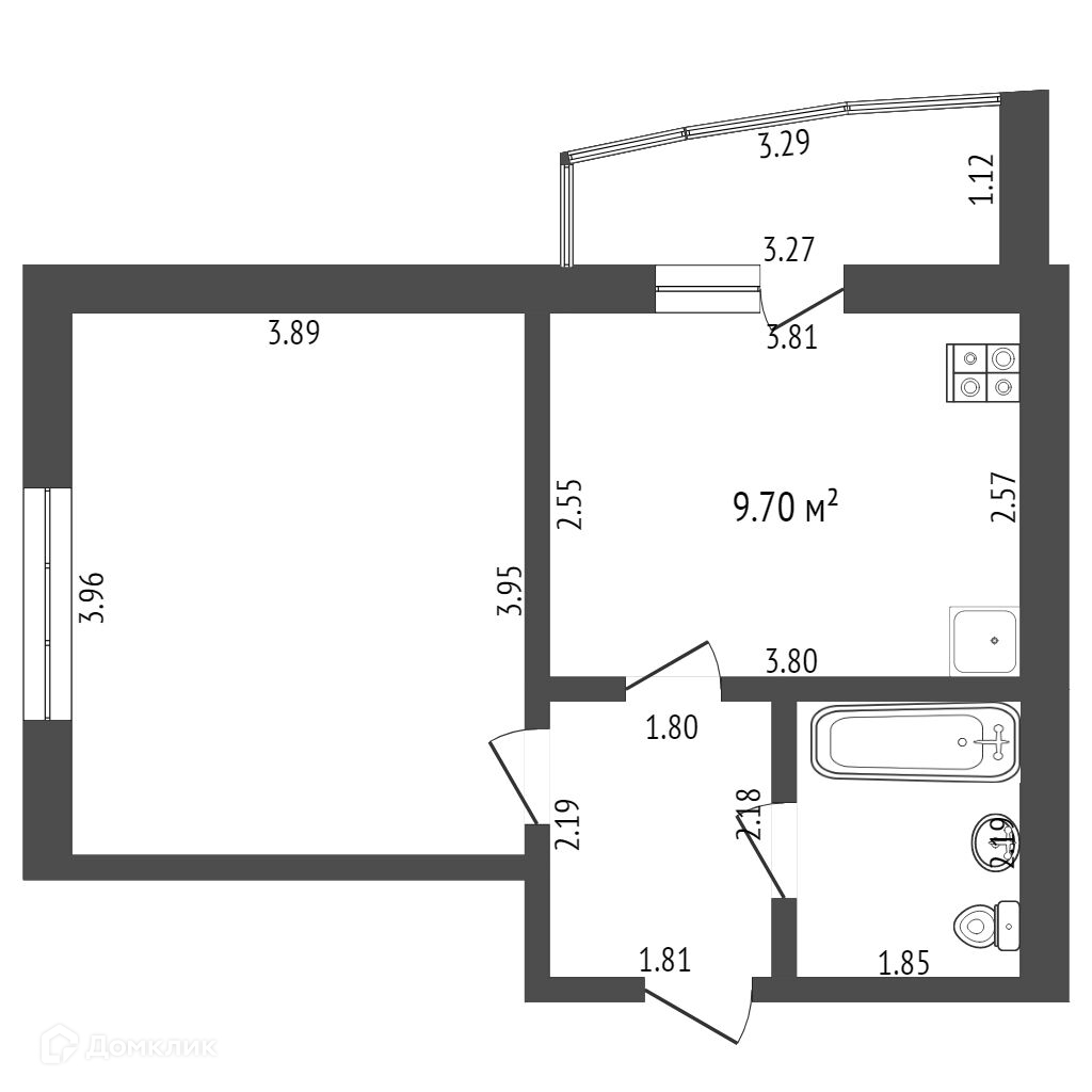 Площадь кухни 9.7 м2