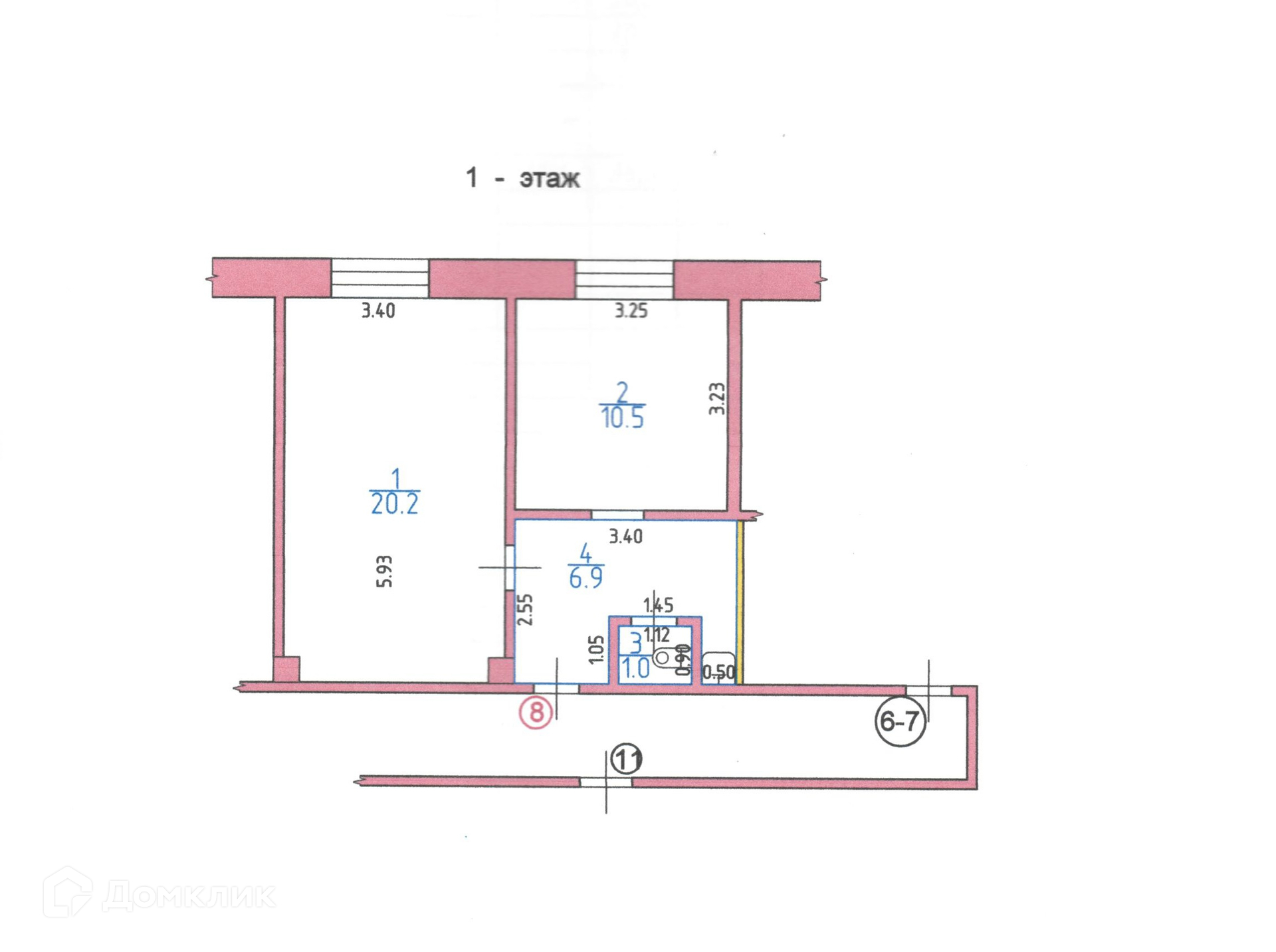 Объект (ID I7124455): 2-комнатная квартира общей площадью 38.60 кв.м. Дом кирпичный.