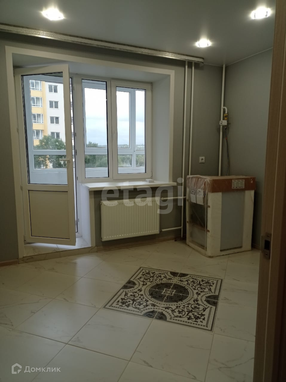 Имеется лоджия с панорамным остеклением. Выход на лоджию из кухни.