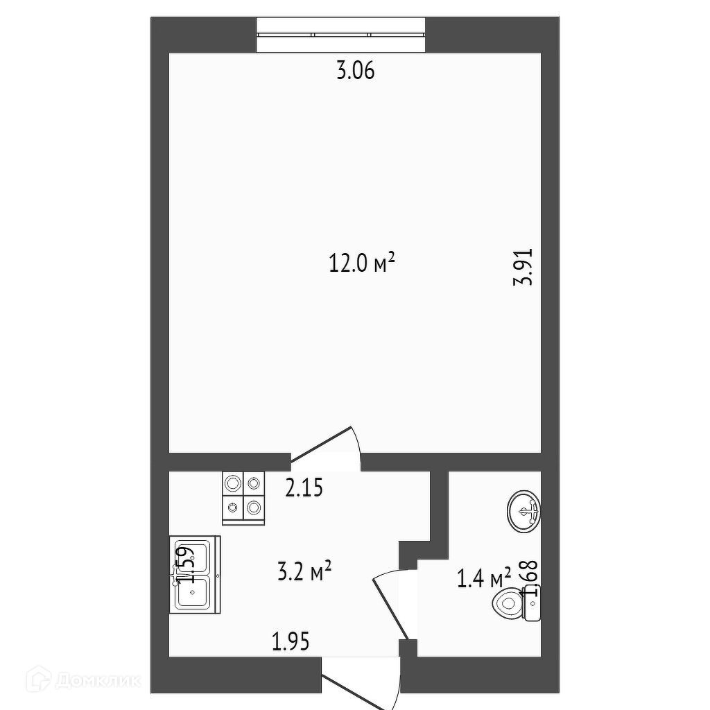 Площадь кухни 3.2 м2