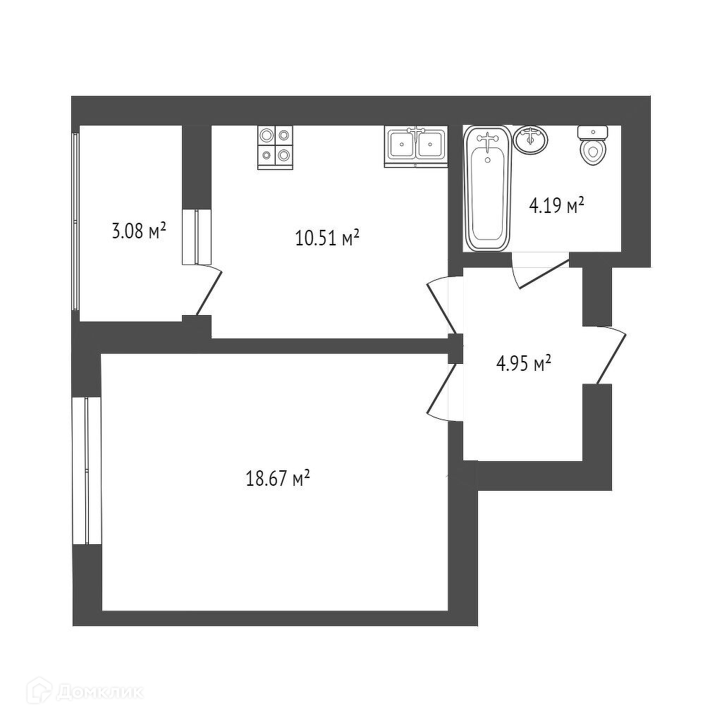Общая площадь 38.5 м2