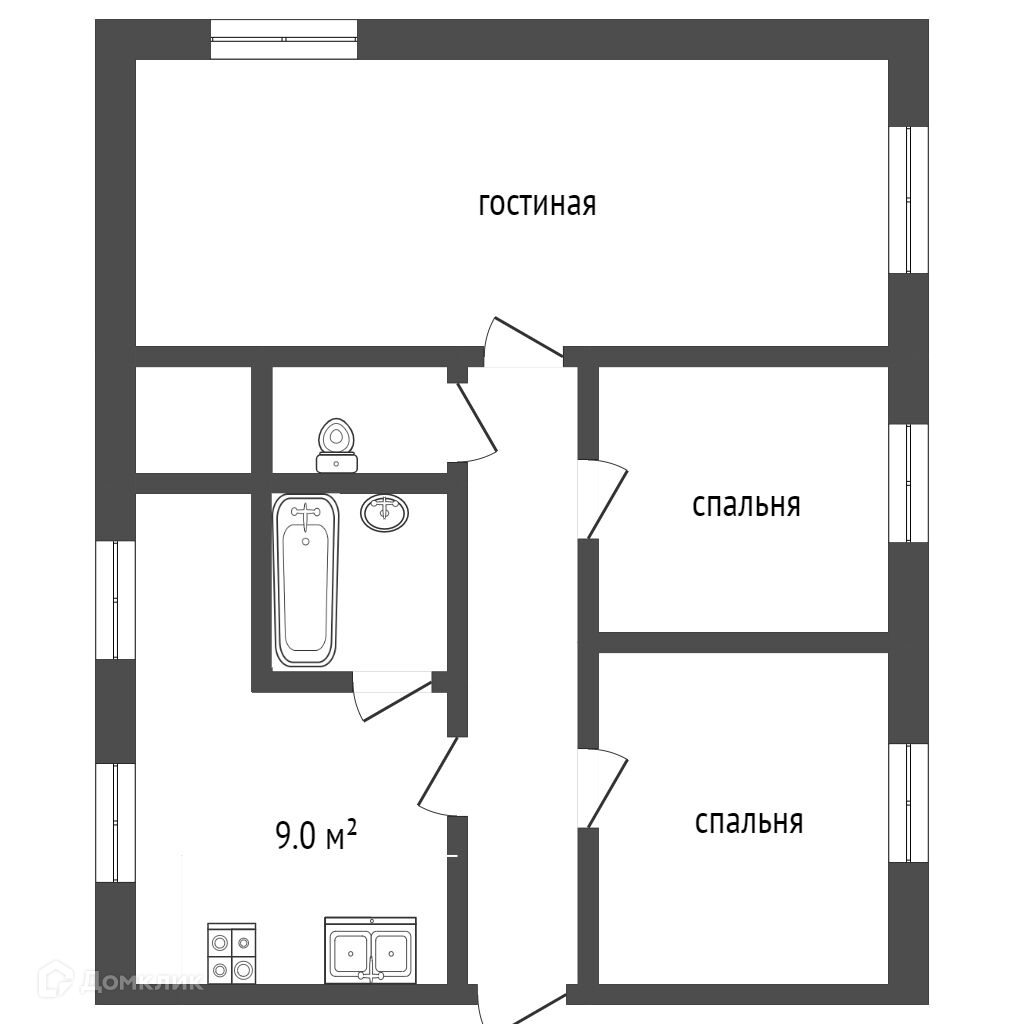 Общая площадь 61 м2