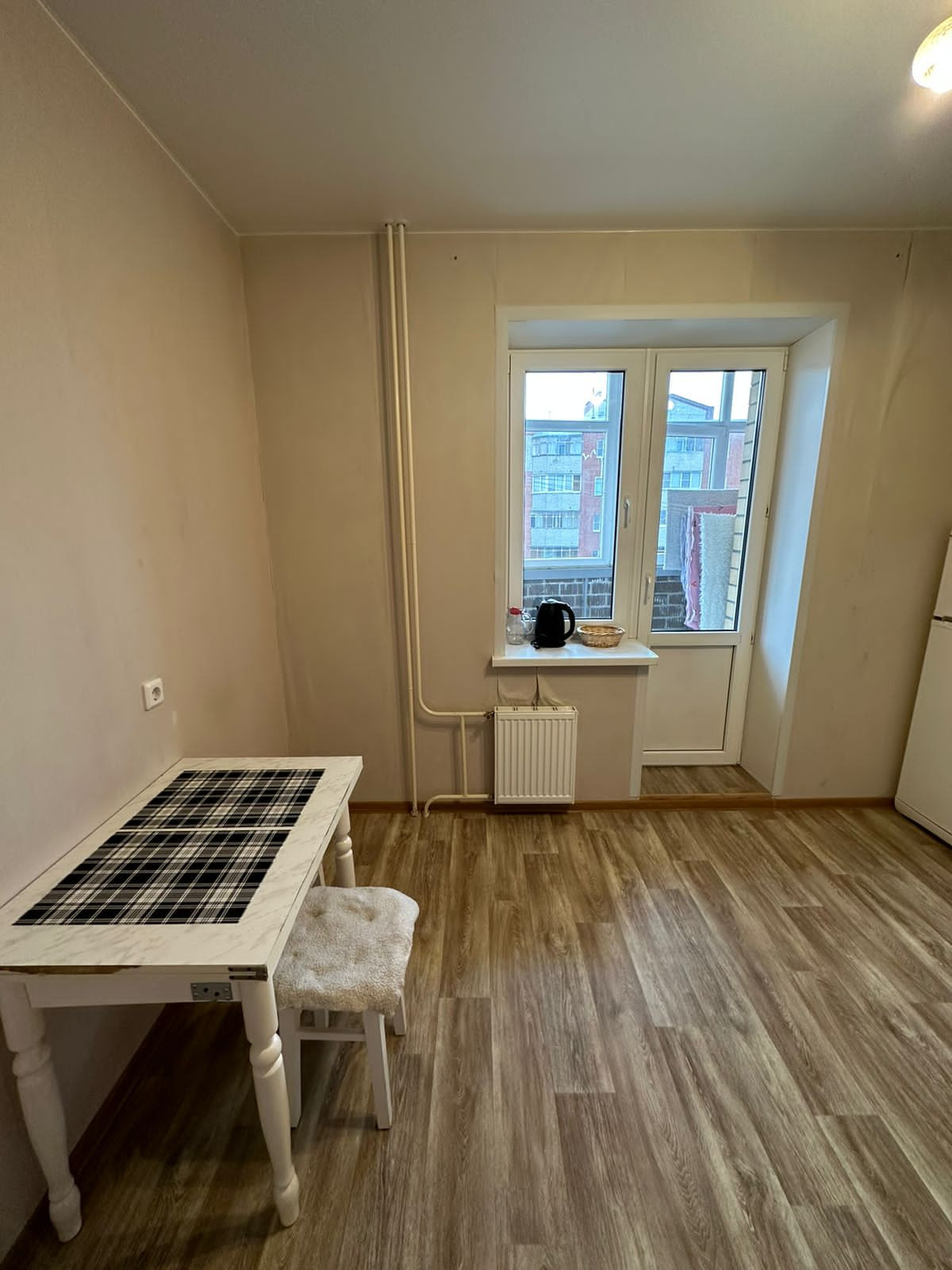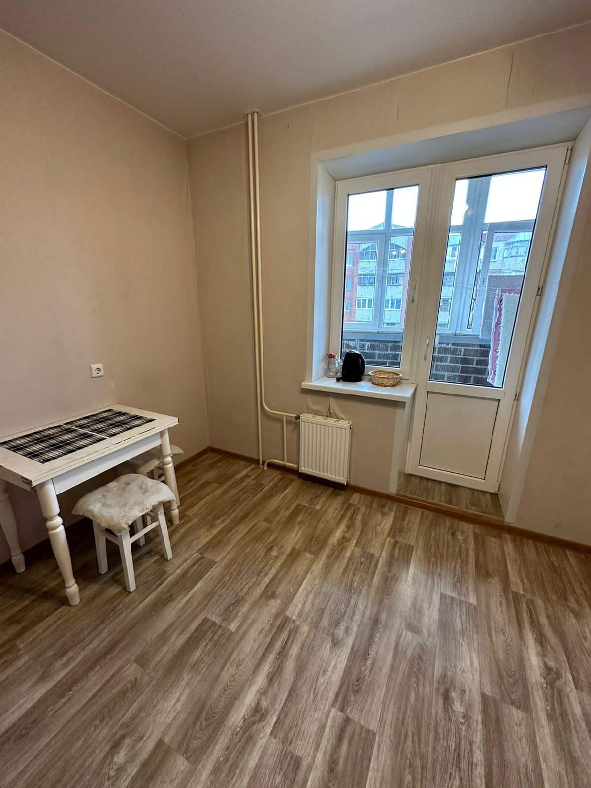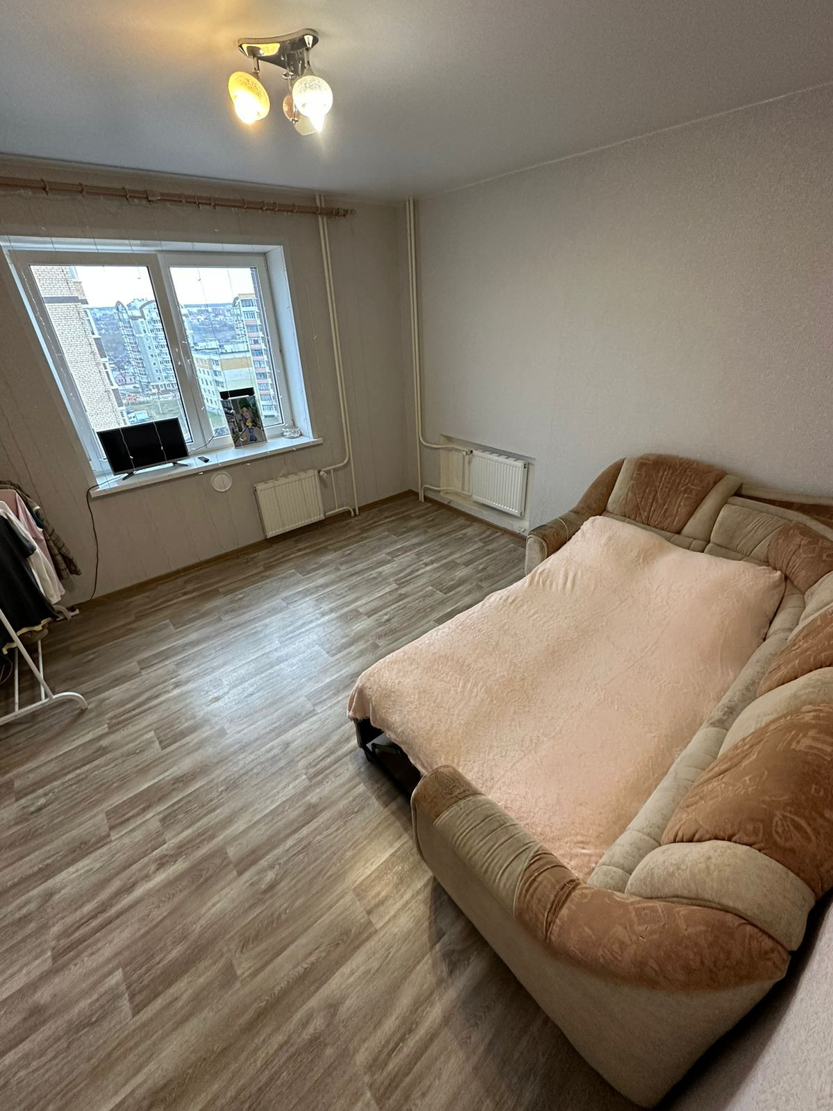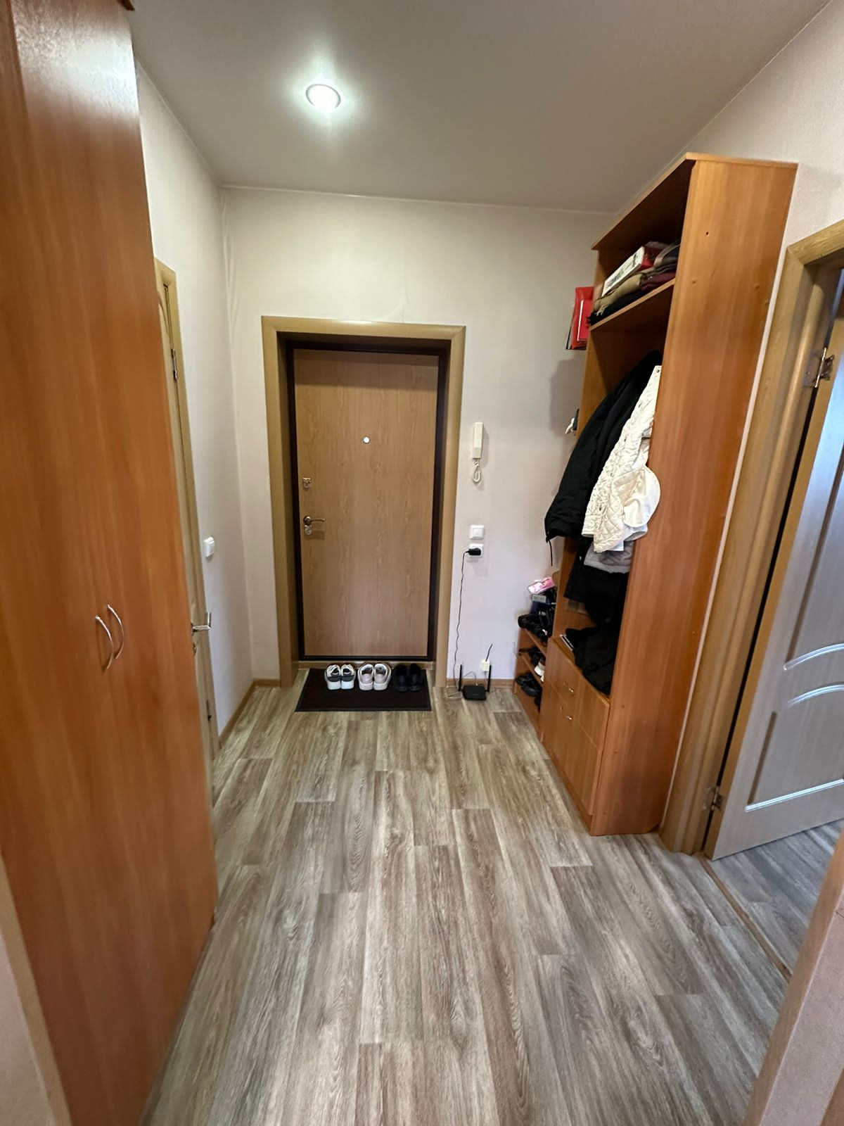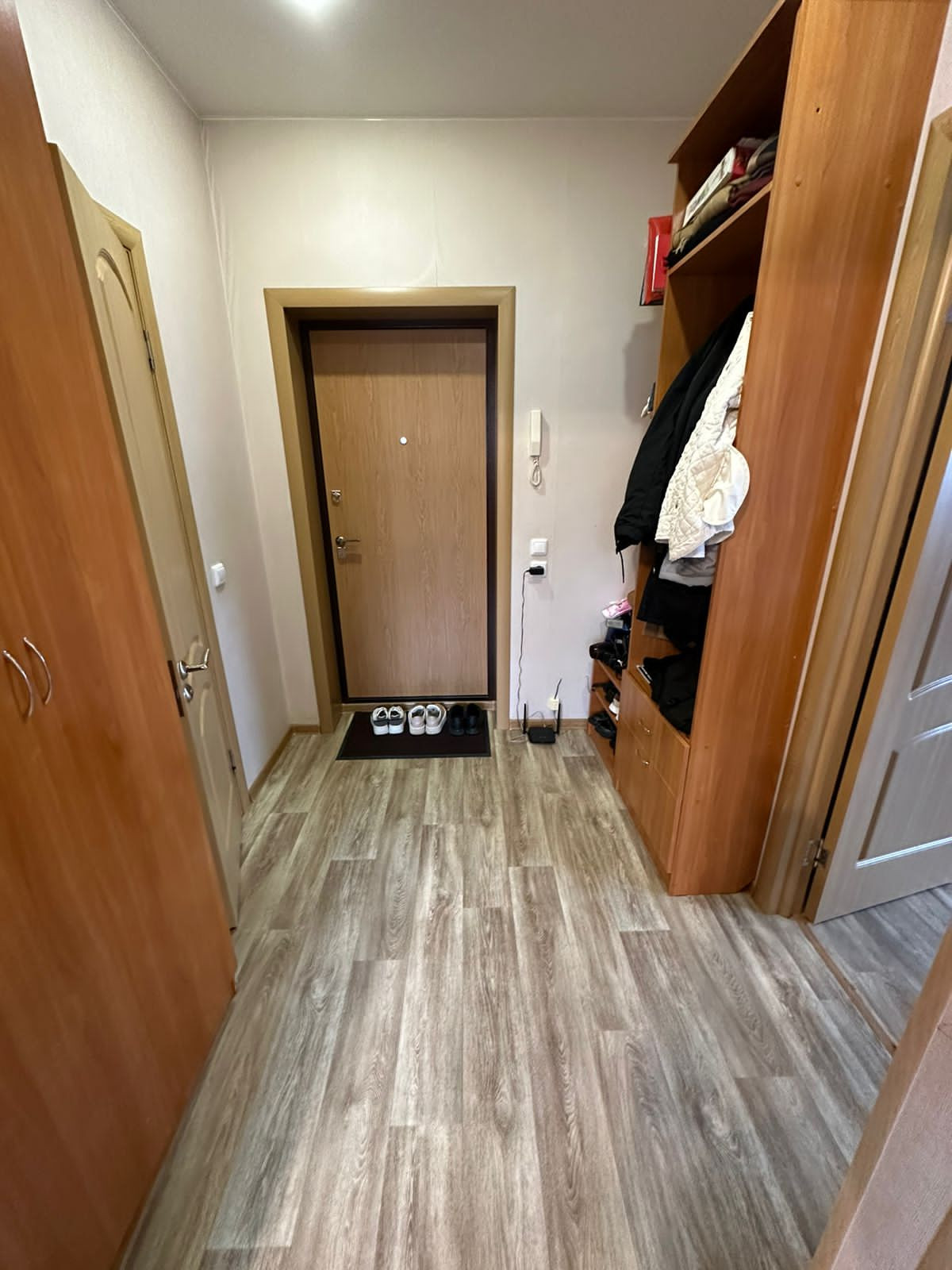 В квартире свежий ремонт. Хорошая входная железная дверь, натяжные потолки, новый линолеум, шпонированные межкомнатные двери. В ванной на полу плитка, стены выровнены и покрашены.