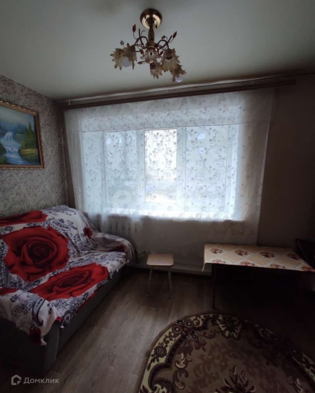 Квартира площадью 15,5 м2 на высоком первом этаже (внизу есть цокольный этаж). В квартире поставлены чугунные батареи и пластиковое окно. На полу постелен плотный линолеум. Входная железная дверь. В квартире также имеется санузел, выложенный плиткой, и душевая зона.