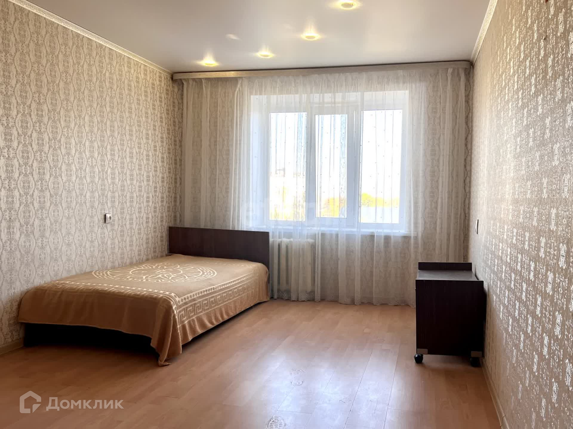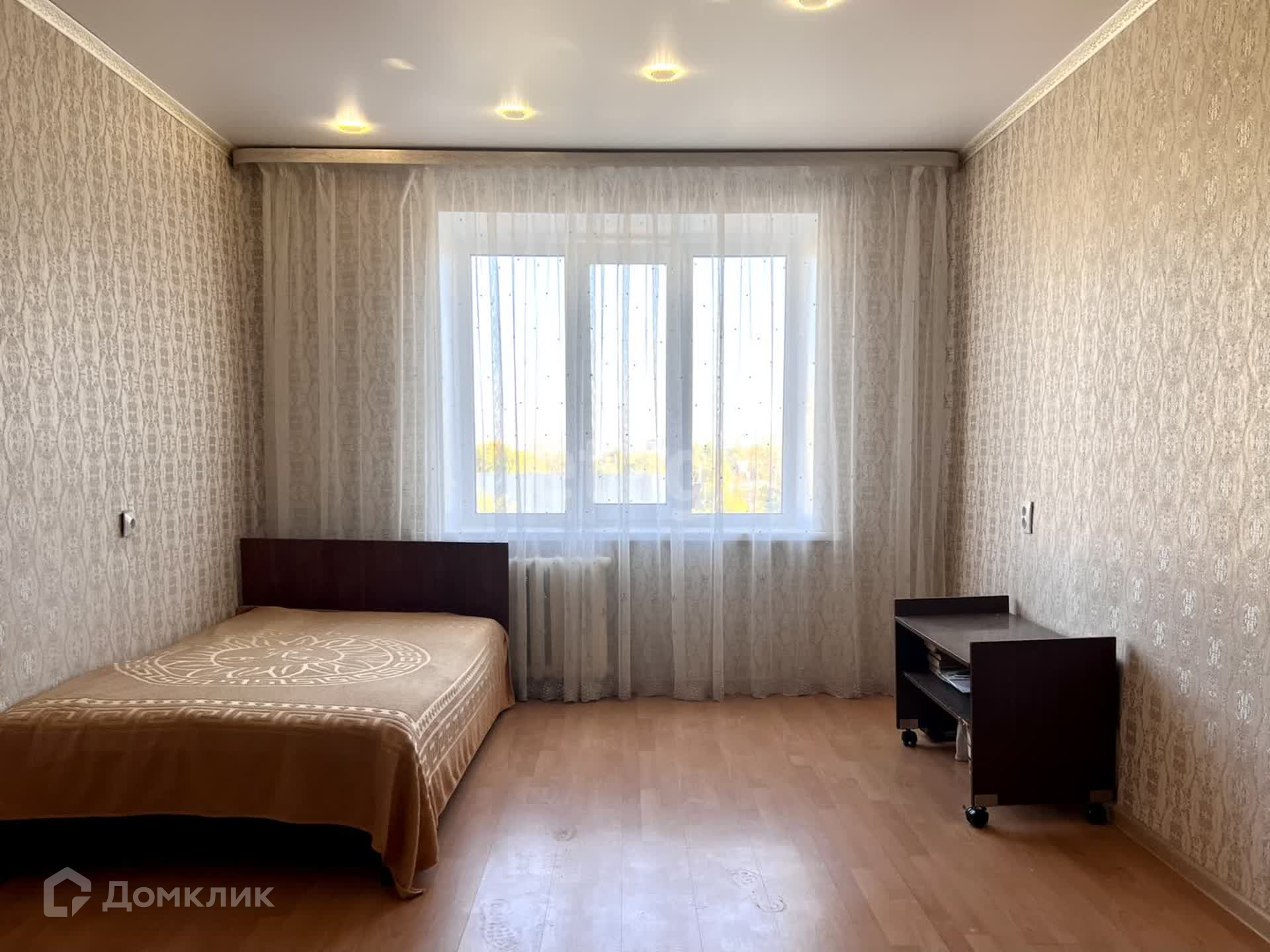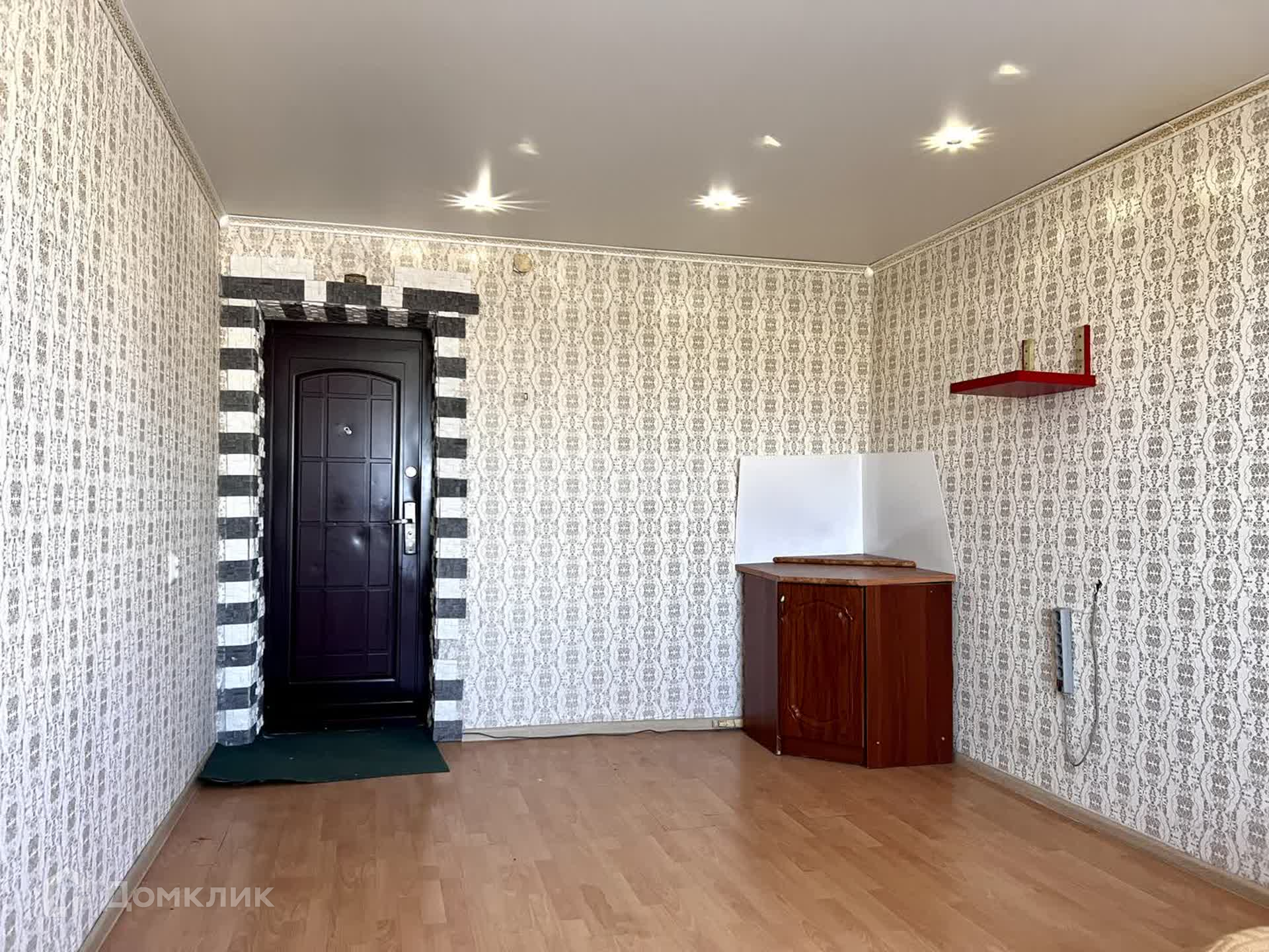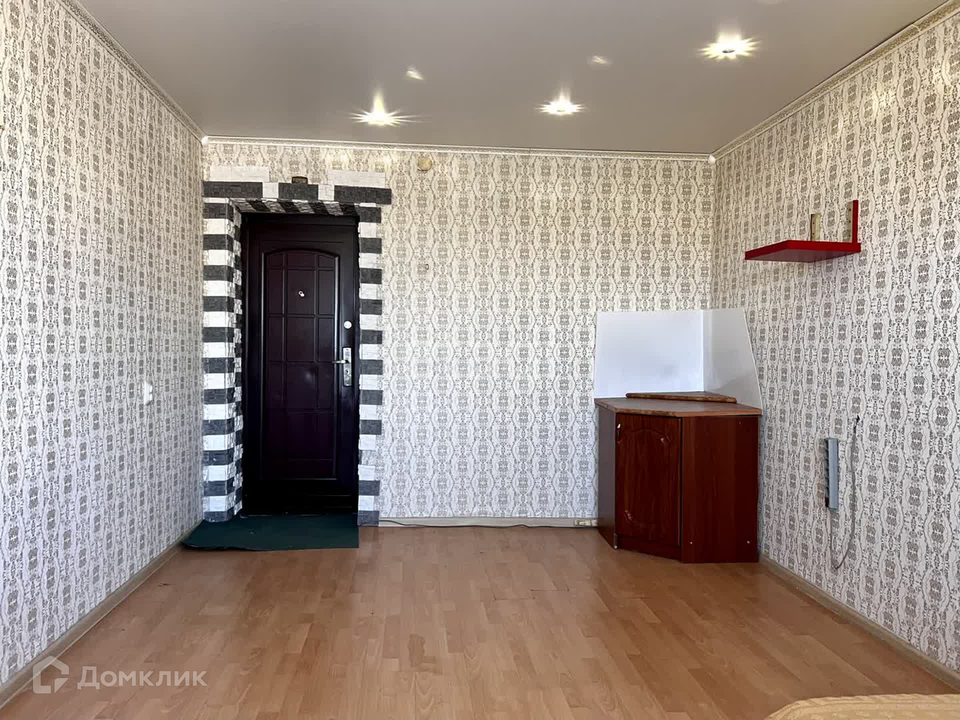 В комнате выполнен косметический ремонт. Установлено пластиковое окно, на полу постелен линолеум. Натяжной потолок с точечными светильниками. Стоит хорошая металлическая входная дверь.