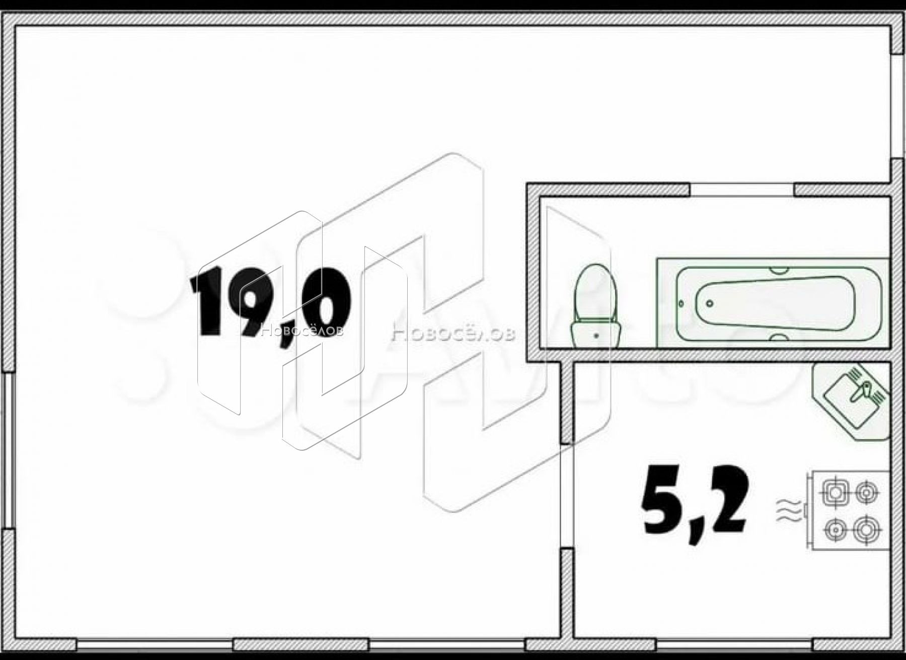 Жилая площадь 19 м2