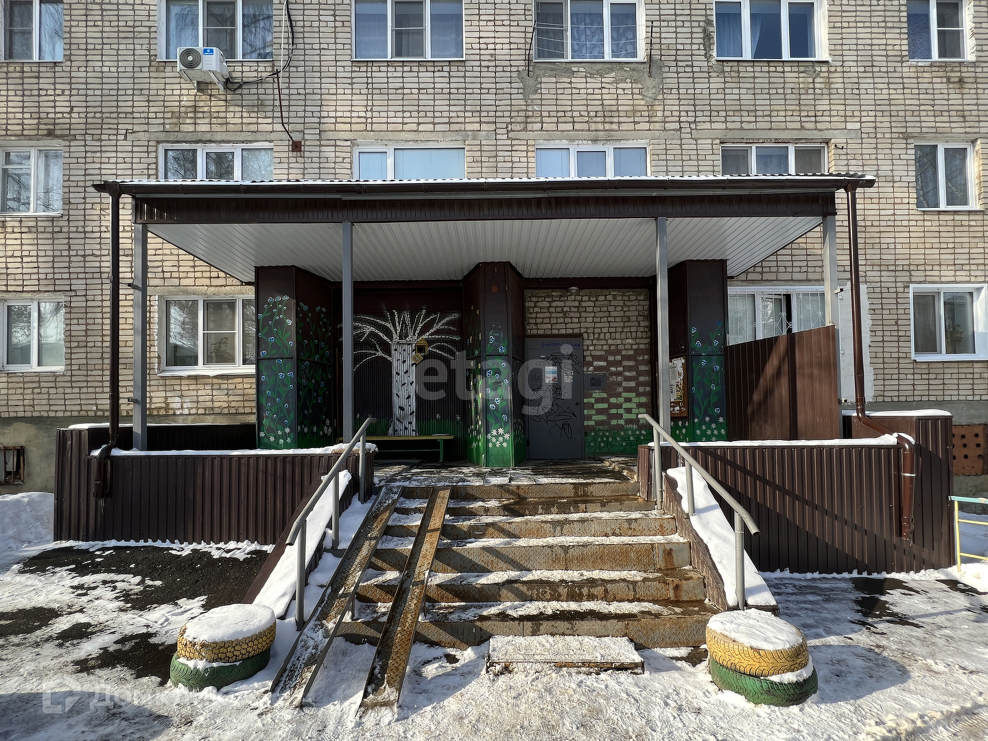 Подъезд чистый, окна так же пластиковые, на подоконниках стоят цветы.