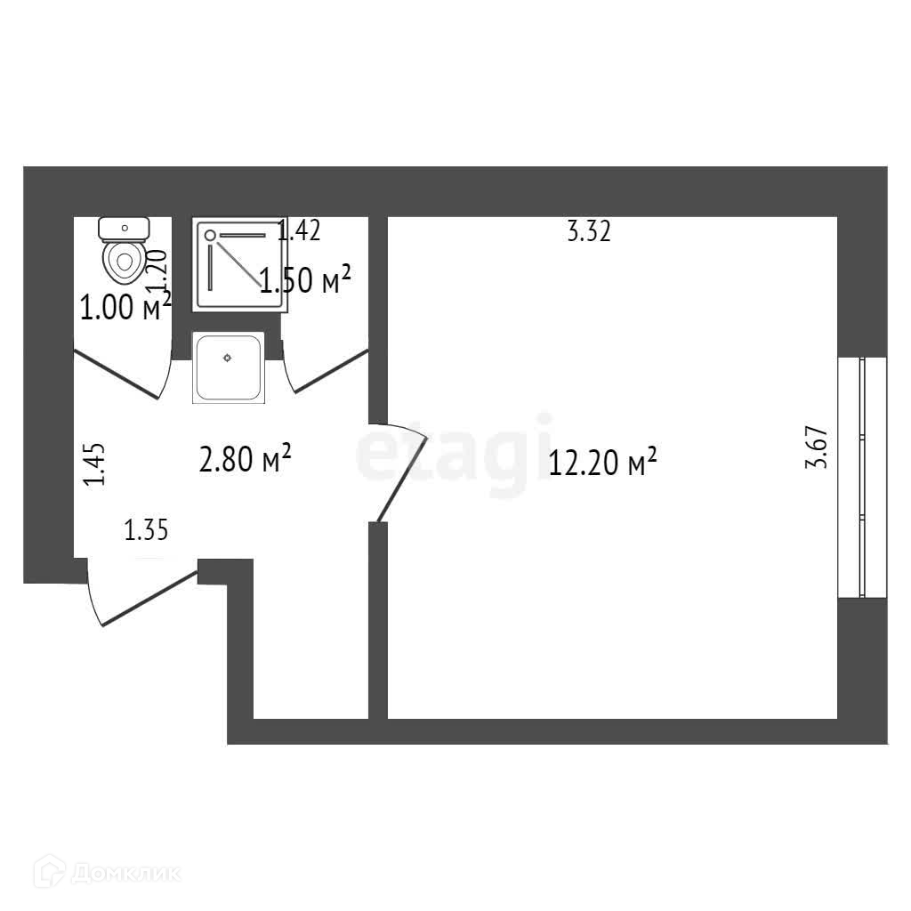 Общая площадь 17.5 м2
