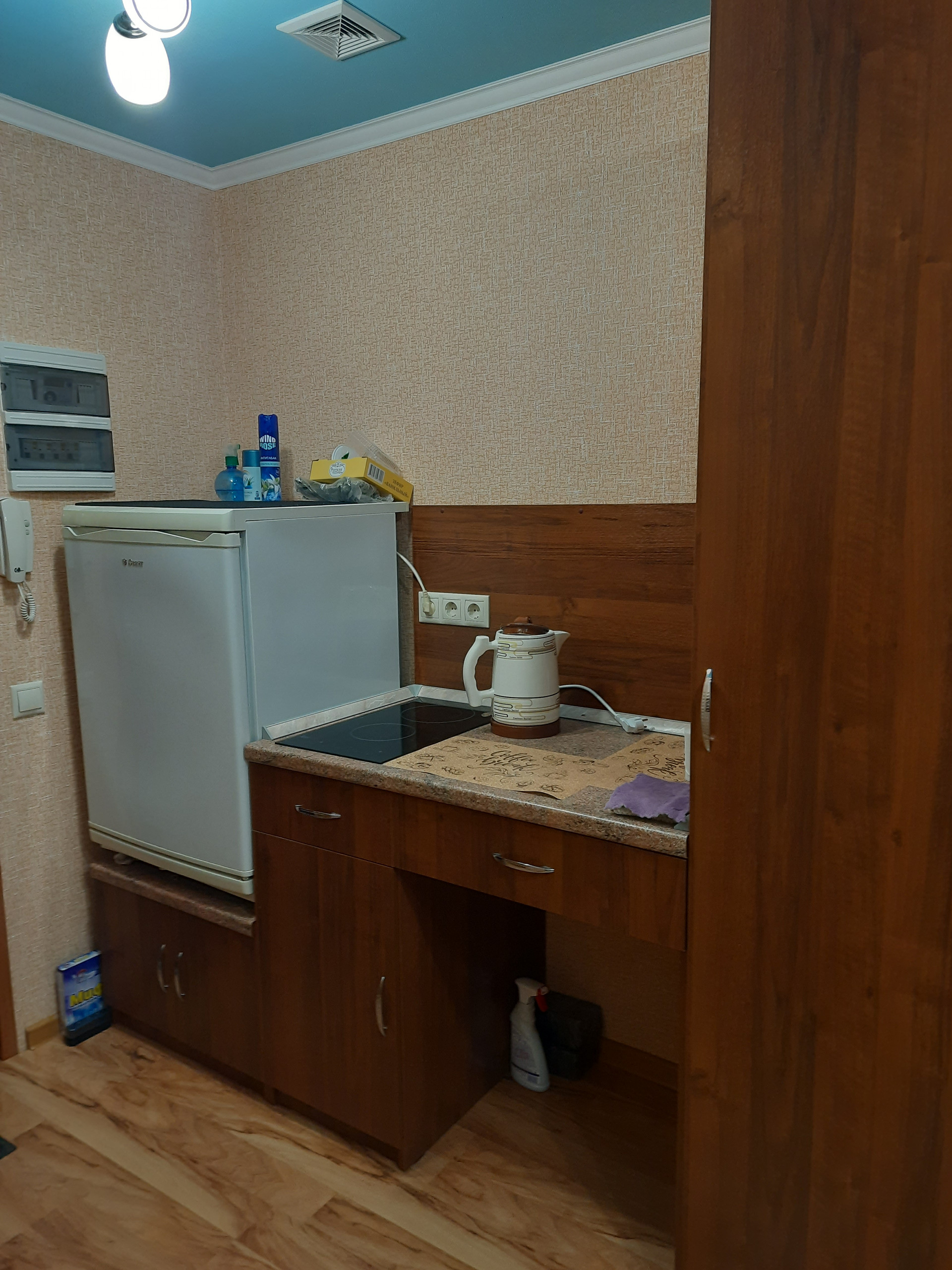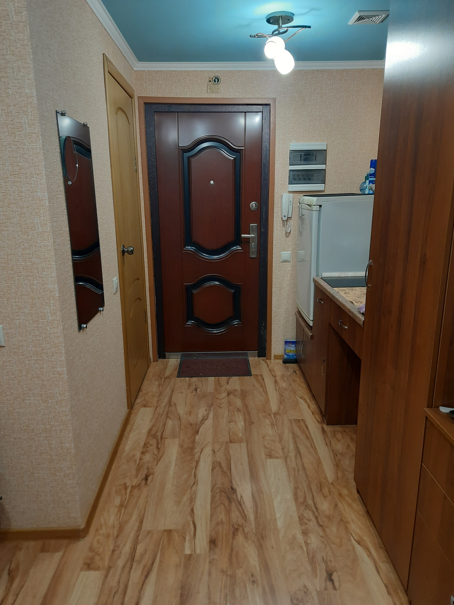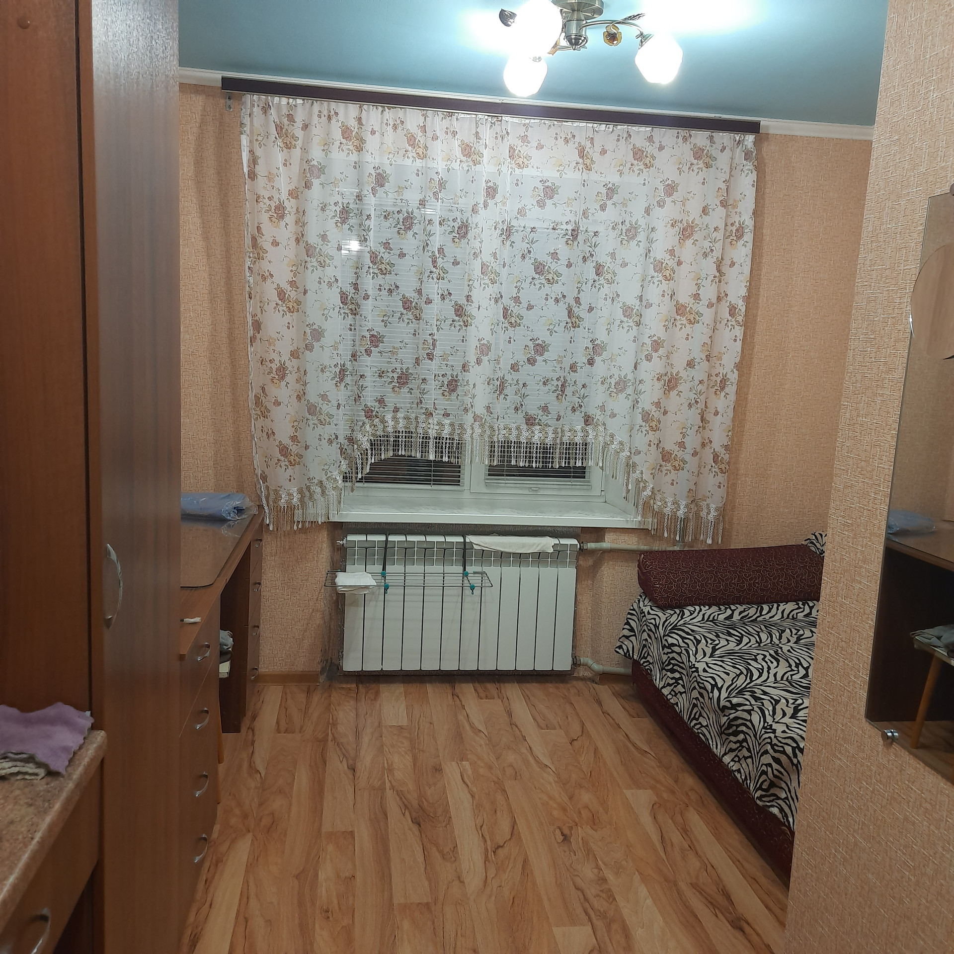Продаётся квартира гостиничного типа, в кирпичном доме на ТЭЦ-2, ул. Горная, не угловая, 1/5 эт., этаж высокий, общей площадью 11.7 кв.м. в отличном состоянии полностью с ремонтом: на полу ламинат, обои, окно ПВХ, жалюзи, железная дверь, потолок выровнен-окрашен водоэмульсионной краской, батареи биметалл, санузел совмещенный - на стенах выложен кафель, трубы-полипропилен, ванная сидячая новая, сантехника новая, установлен накопительный электрический водонагреватель на воду и отопление, есть встроенная электрическая двухкомфорочная варочная поверхность, новый электросчетчик автомат, домофон. Квартира готова к заселению (заходи и живи) со встроенной и мягкой мебелью и частично с техникой (забирается только телевизор).