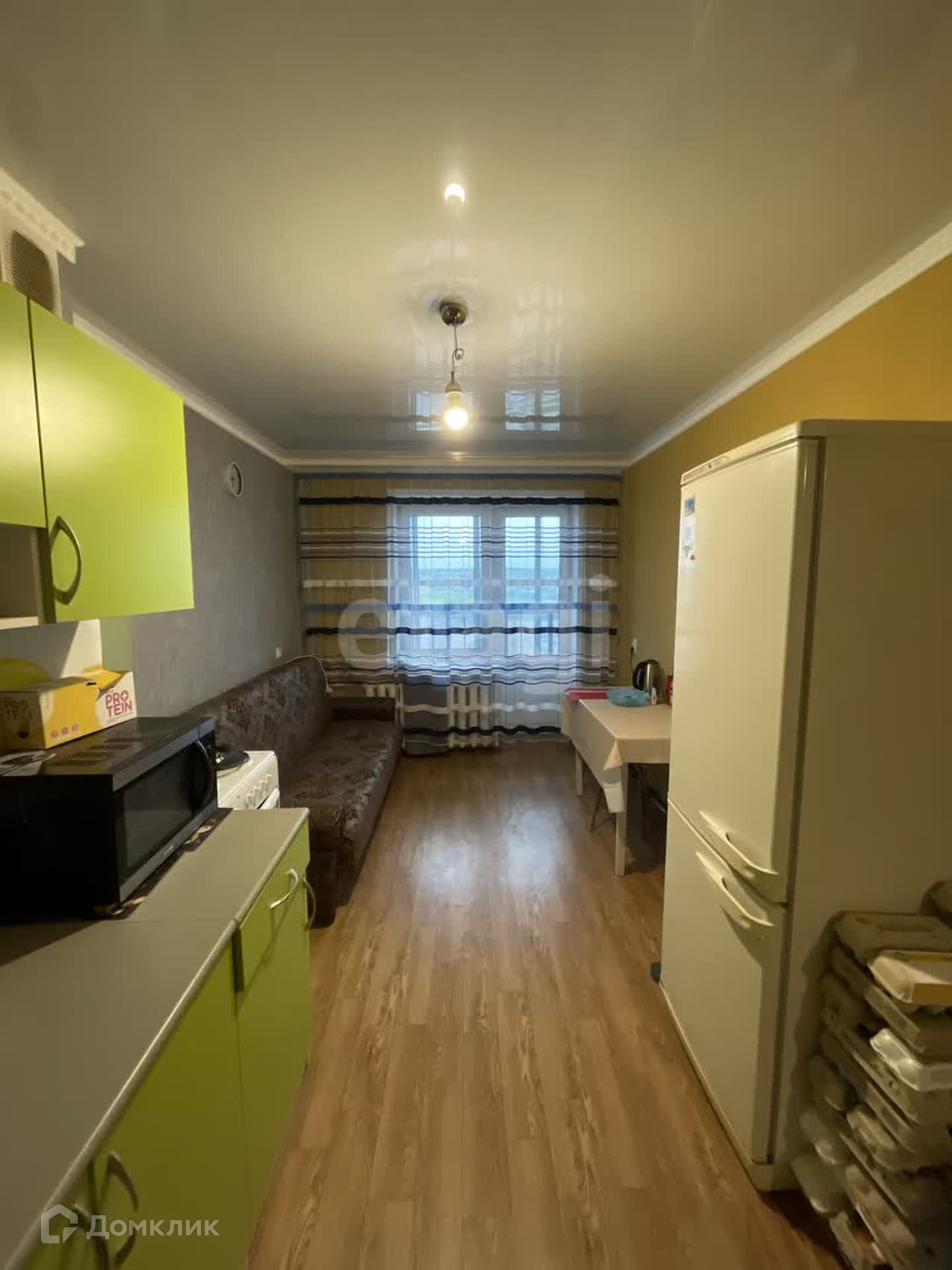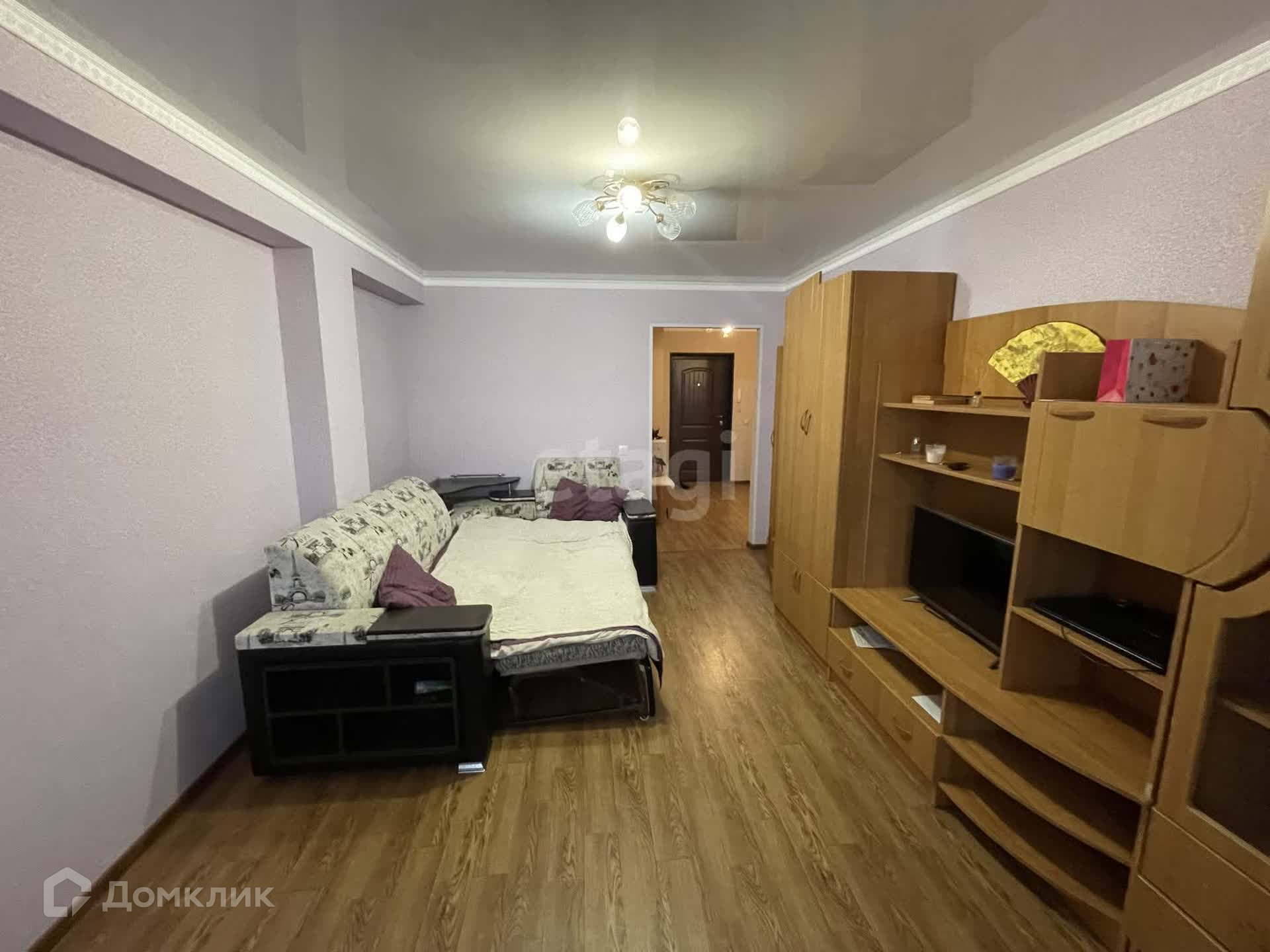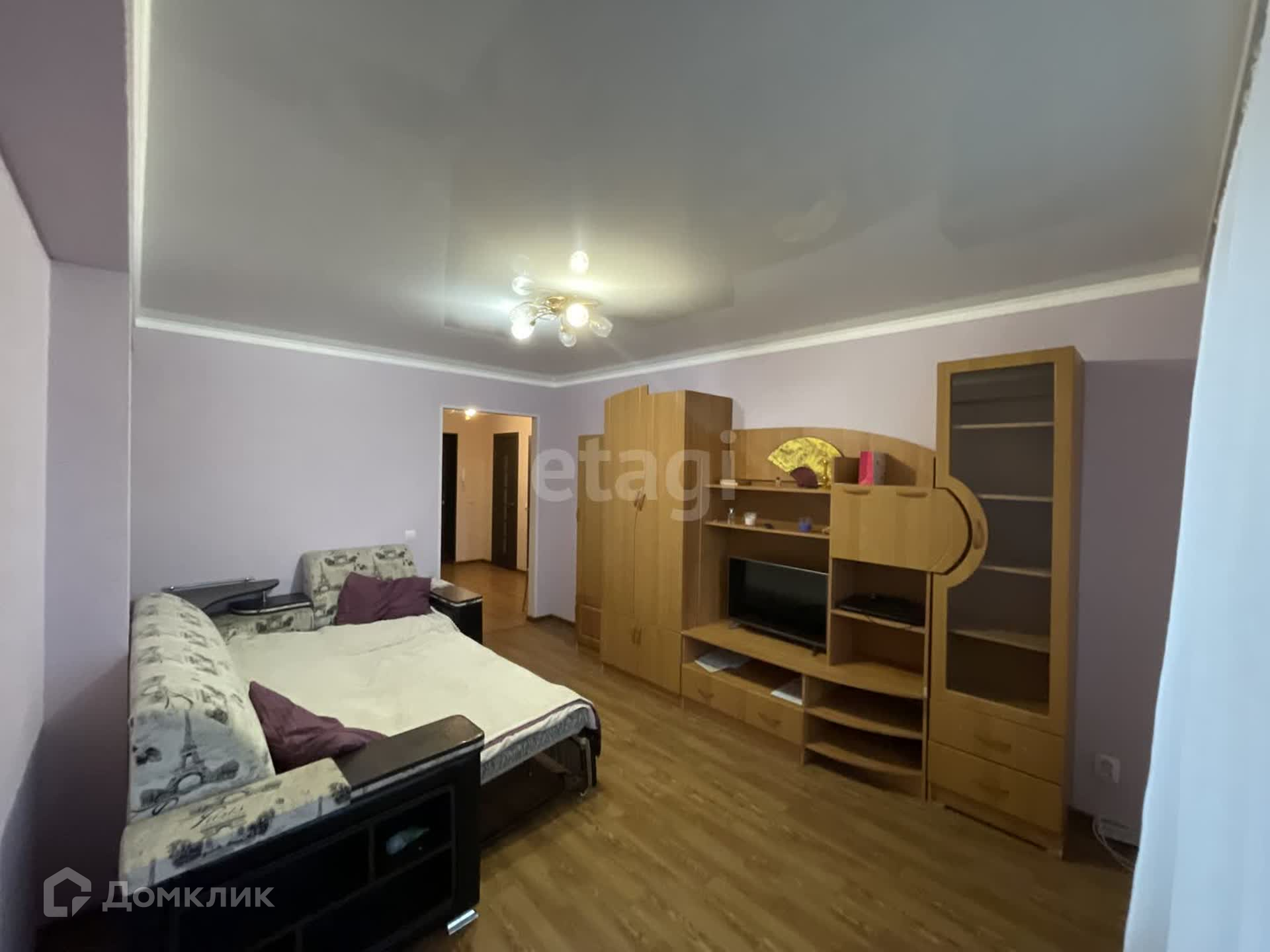 В квартире сделан косметический ремонт. Остается вся мебель и техника. Потолки натяжные, на полу линолеум. Санузел раздельный, обшит пластиковыми панелями.