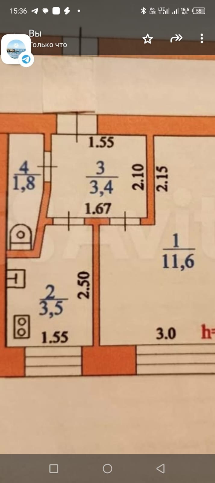 Жилая площадь 11.6 м2