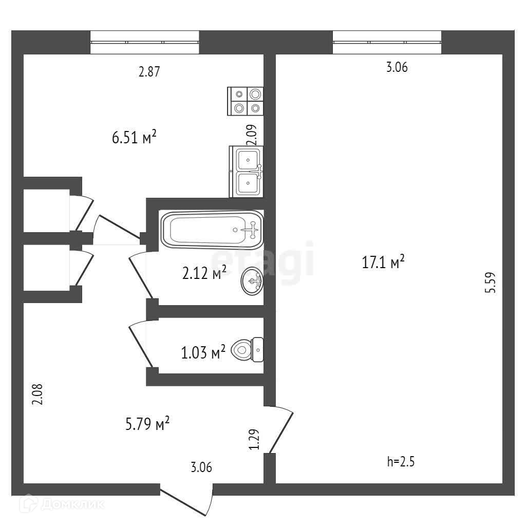 Общая площадь 33 м2