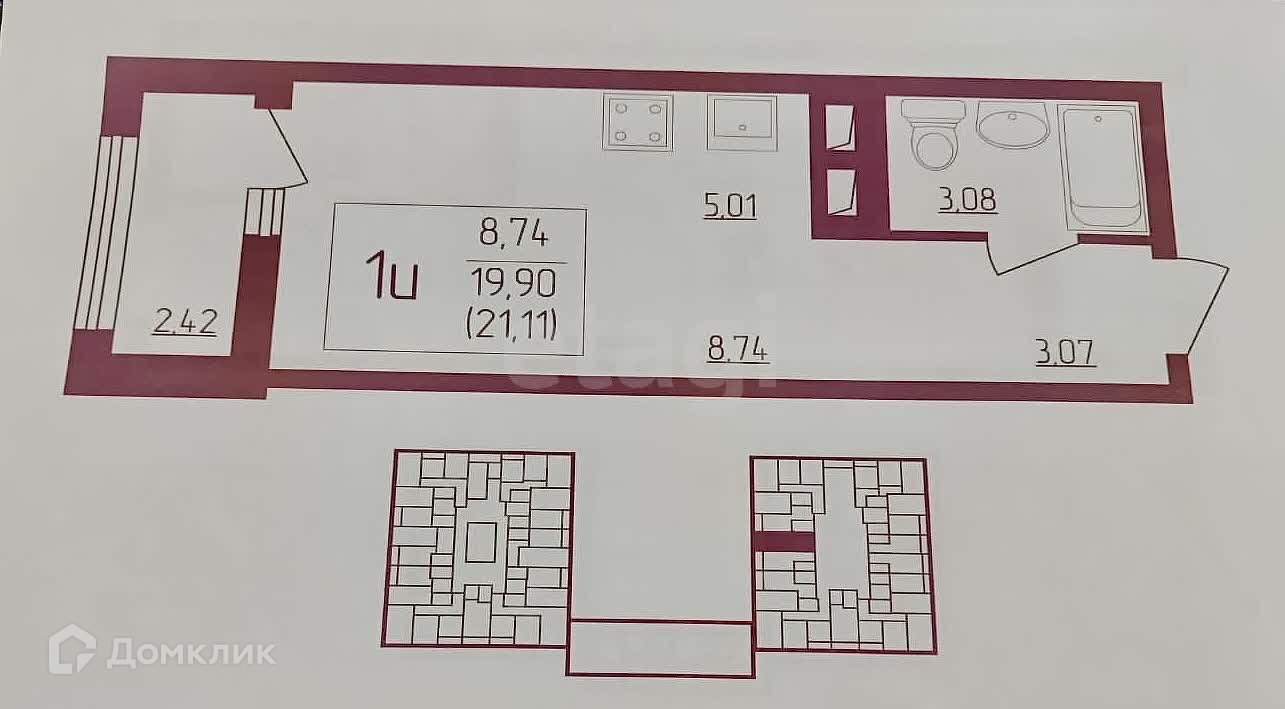 Общая площадь 21.2 м2