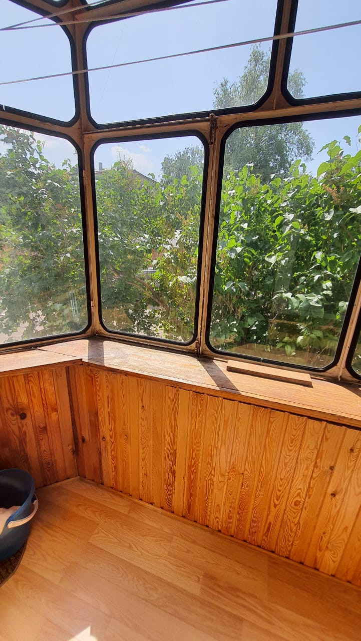 - балкон застеклен обшит деревянной вагонкой