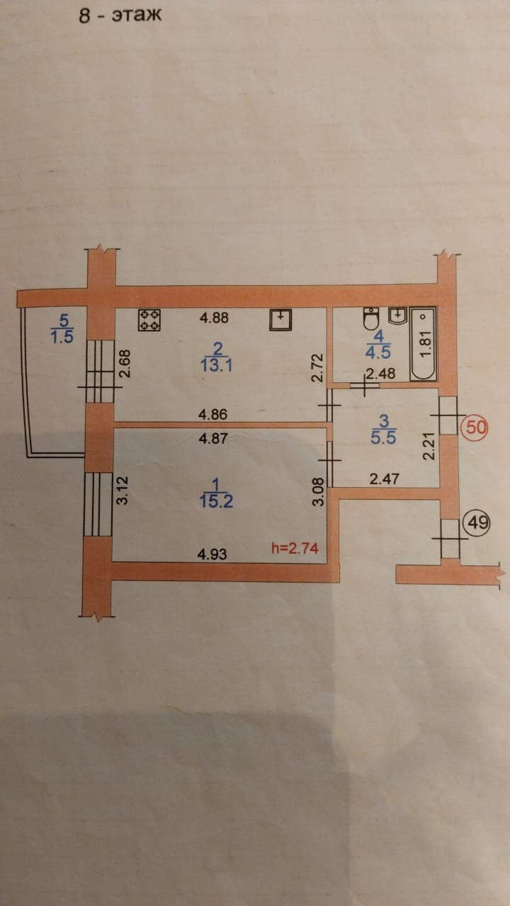 Балкон, лоджия 1 балкон