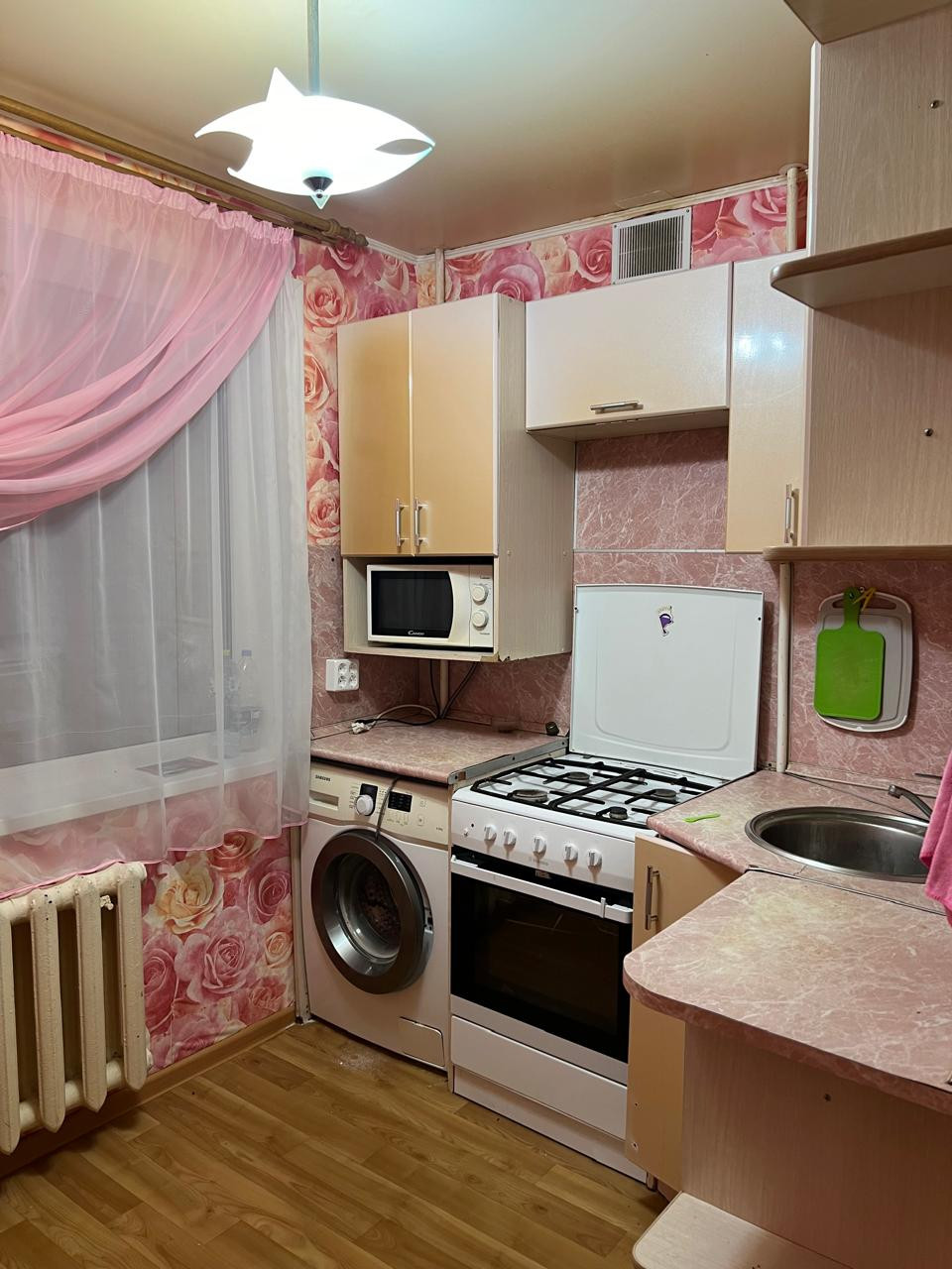 В подарок от хозяйки остается кухонный гарнитур с плитой.