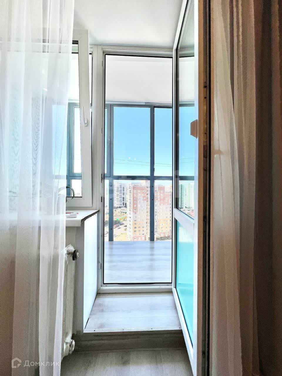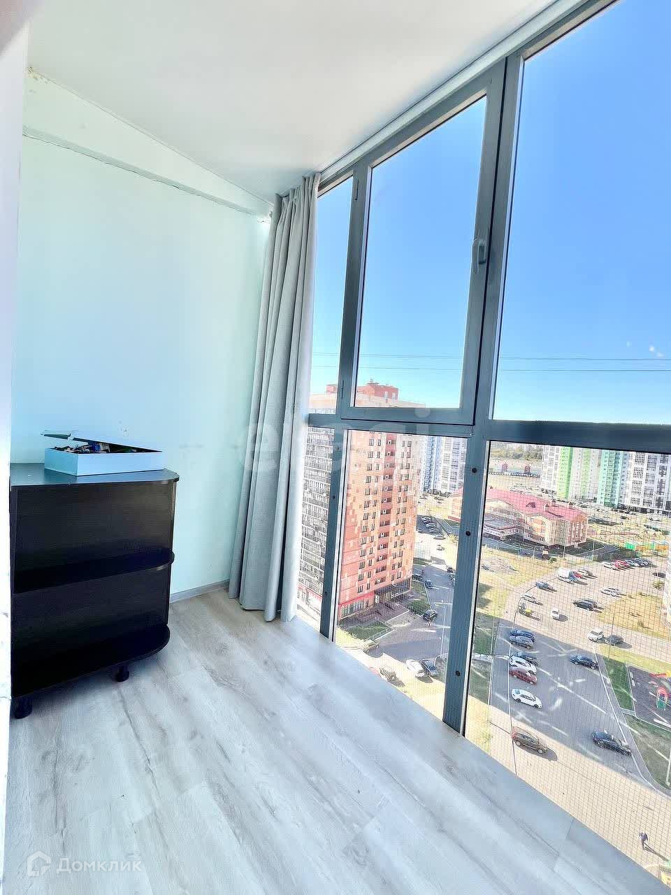 Квартира включает в себя гардеробную, а также туалет и ванную, отделанные кафелем, что придает интерьеру аккуратный и стильный вид. Просторный балкон открывает великолепный вид на окружающие пейзажи, позволяя наслаждаться утренним кофе или уютным вечерним отдыхом на свежем воздухе.