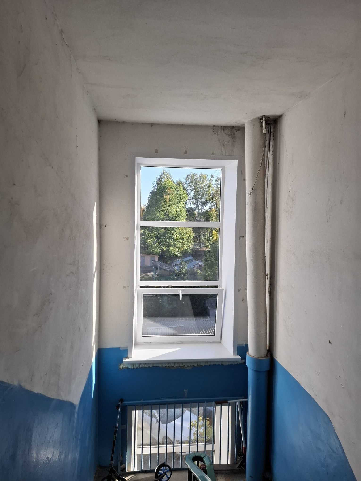 установлены стеклопакеты и входная дверь.