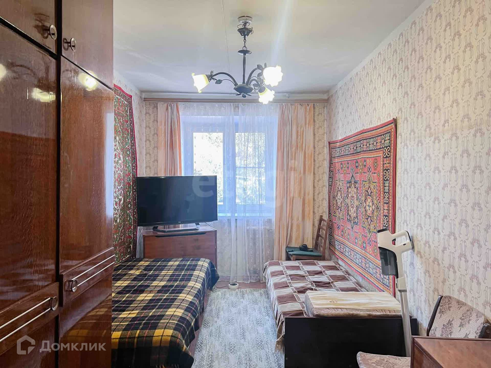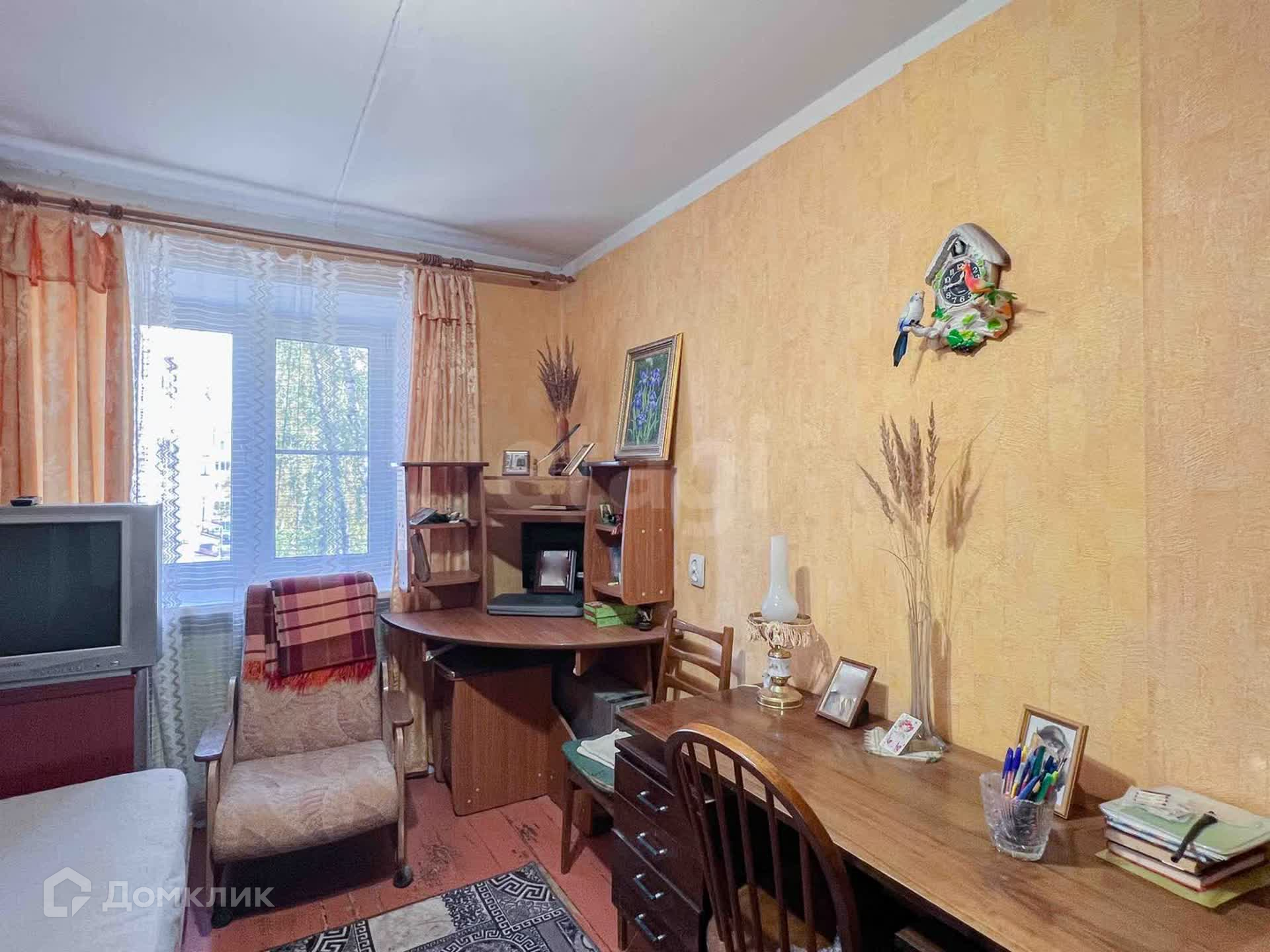 Квартира требует частичного ремонта, но все комнаты с пластиковыми окнами, а полы - деревянные. Просторная гостиная площадью 17,5 м² имеет выход на застекленный балкон. Две спальни размером 10,1 м² и 13,9 м² обеспечивают комфортное проживание. Кухня небольшая, с плиткой на фартуке. Санузел раздельный и также отделан плиткой.
