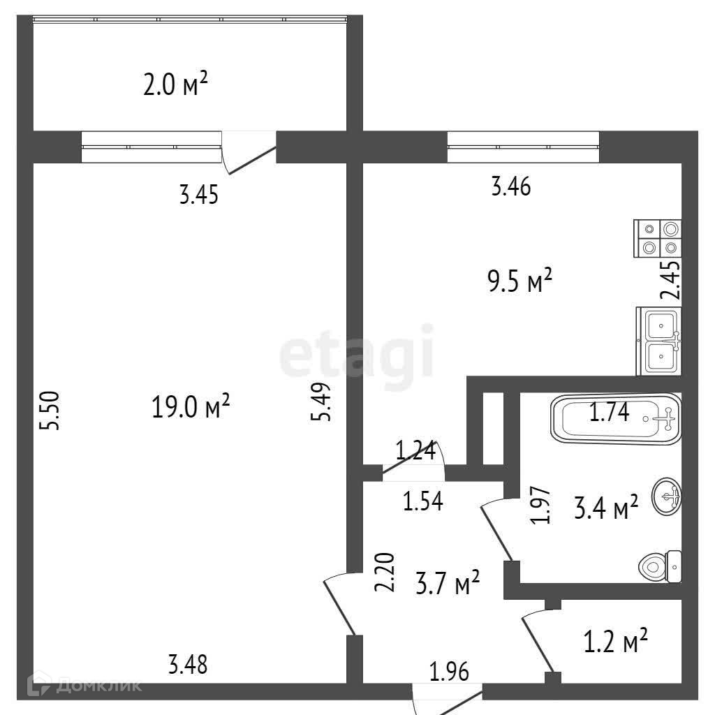 Общая площадь 37 м2