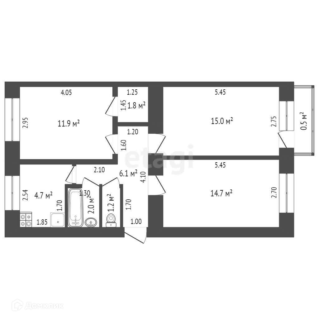 Общая площадь 57.4 м2