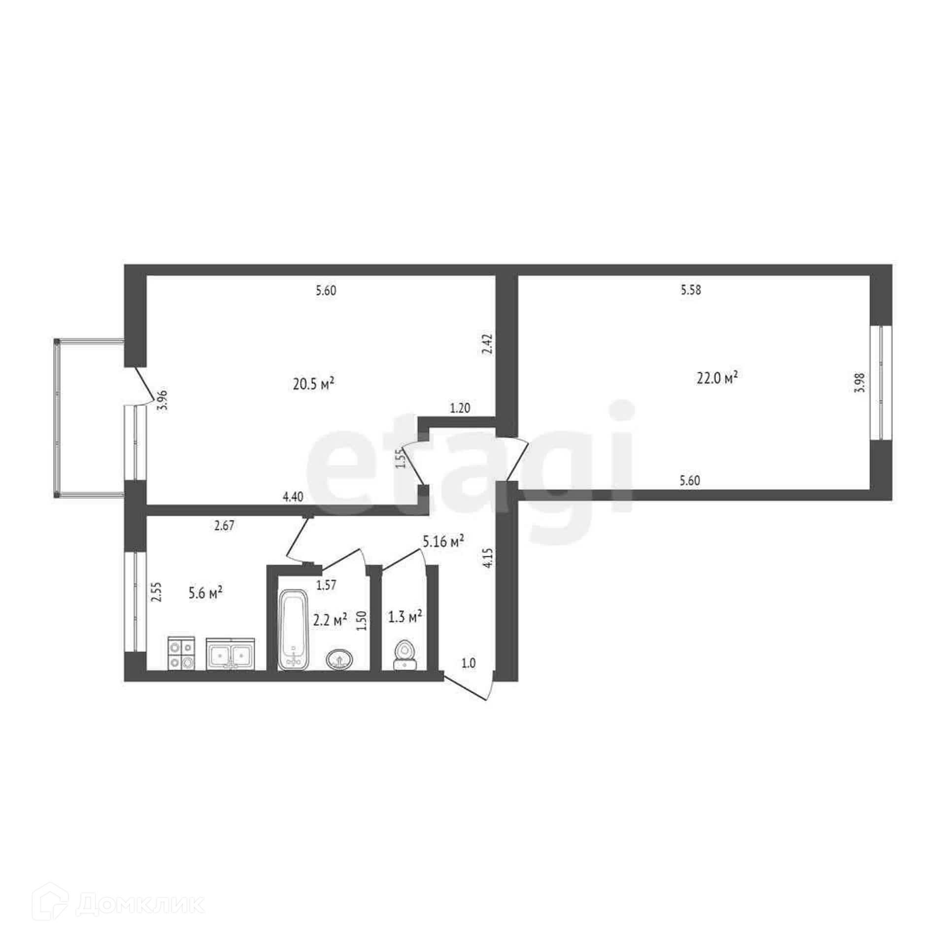 Общая площадь 57.8 м2
