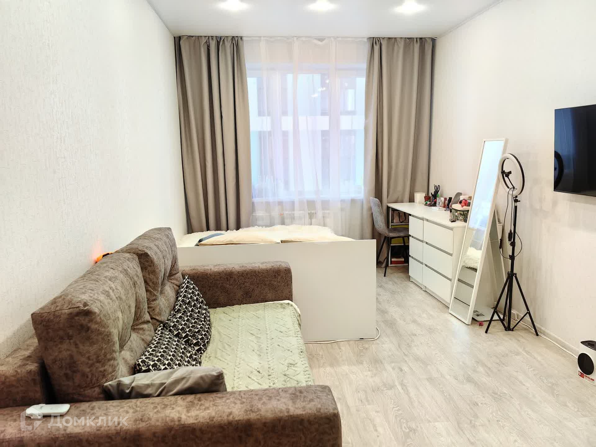 По данному объекту внесен аванс.Уважаемые покупатели, продается однокомнатная квартира в ЖК «Дом по ул. А. Лусс на Светотехстрое». Квартира расположена на 9-ом этаже 18-ти этажного монолитно-кирпичного дома 2023 года постройки. Квартира очень теплая, уютная и светлая. Общая площадь квартиры 43 кв.м. Просторная кухня — 12 кв.м. с выходом на застекленную лоджию. Комната 17 кв.м. правильной формы. Вместительная гардеробная 3 кв.м., оборудована для хранения вещей. Современный ремонт, выполнен из качественных материалов: натяжные потолки, на полу ламинат. Санузел совмещенный, выложен кафелем. Квартира полностью оборудована техникой и мебелью, можно сразу заехать и жить. Дом расположен в районе с хорошей инфраструктурой: на территории ЖК расположен ФОК, рядом лицей №25, школа №10, детский сад № 79, через дорогу рынок «Ринг», рядом остановки общественного транспорта. Доп. описание: санузел совмещенный, пластиковые окна, в доме есть: открытый двор, наземный паркинг, лифт пассажирский, лифт грузовой, современный ремонт, также имеются: телефон, интернет, кабельное телевидение, счетчики холодной и горячей воды, домофон, железная дверь,