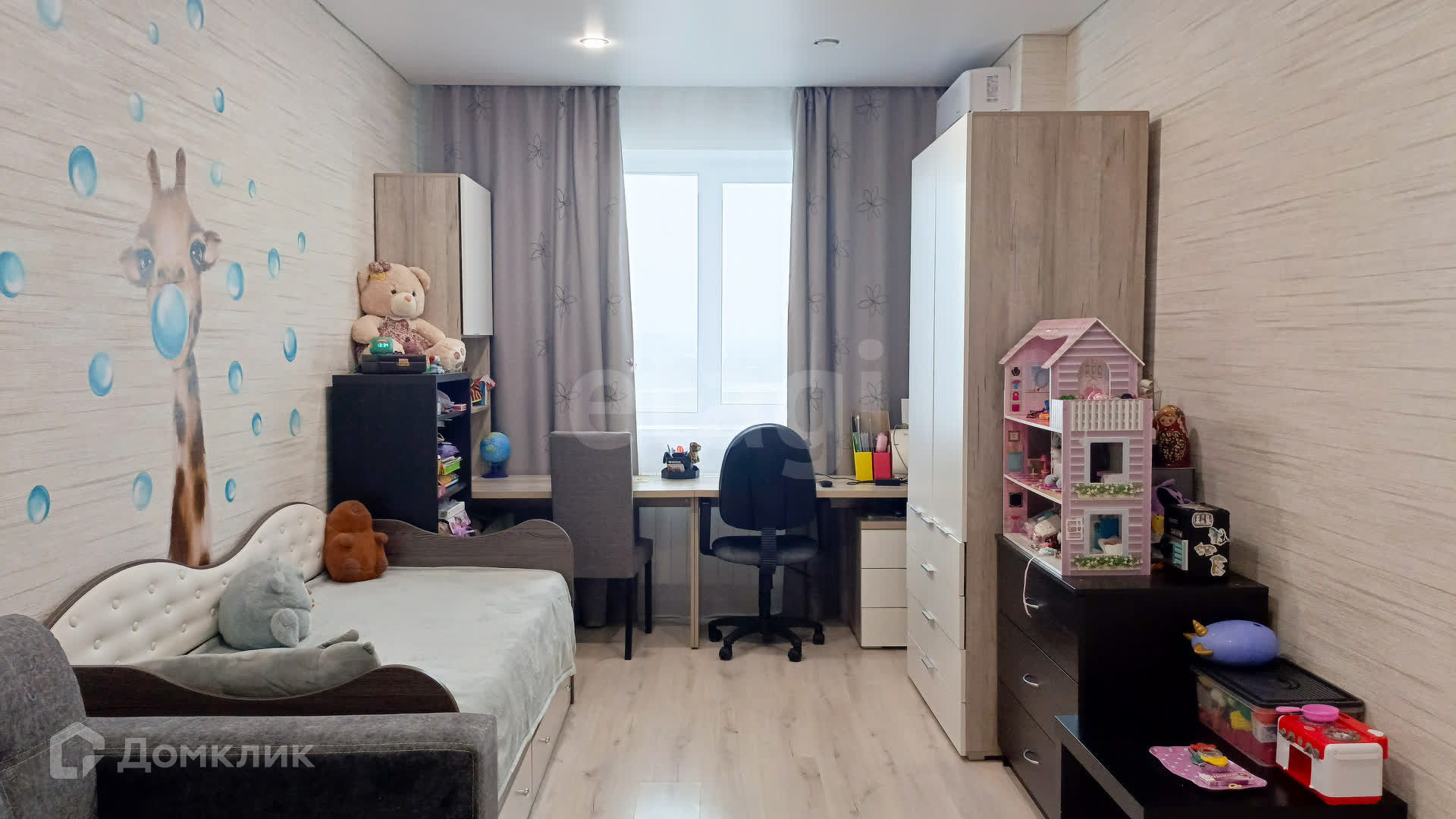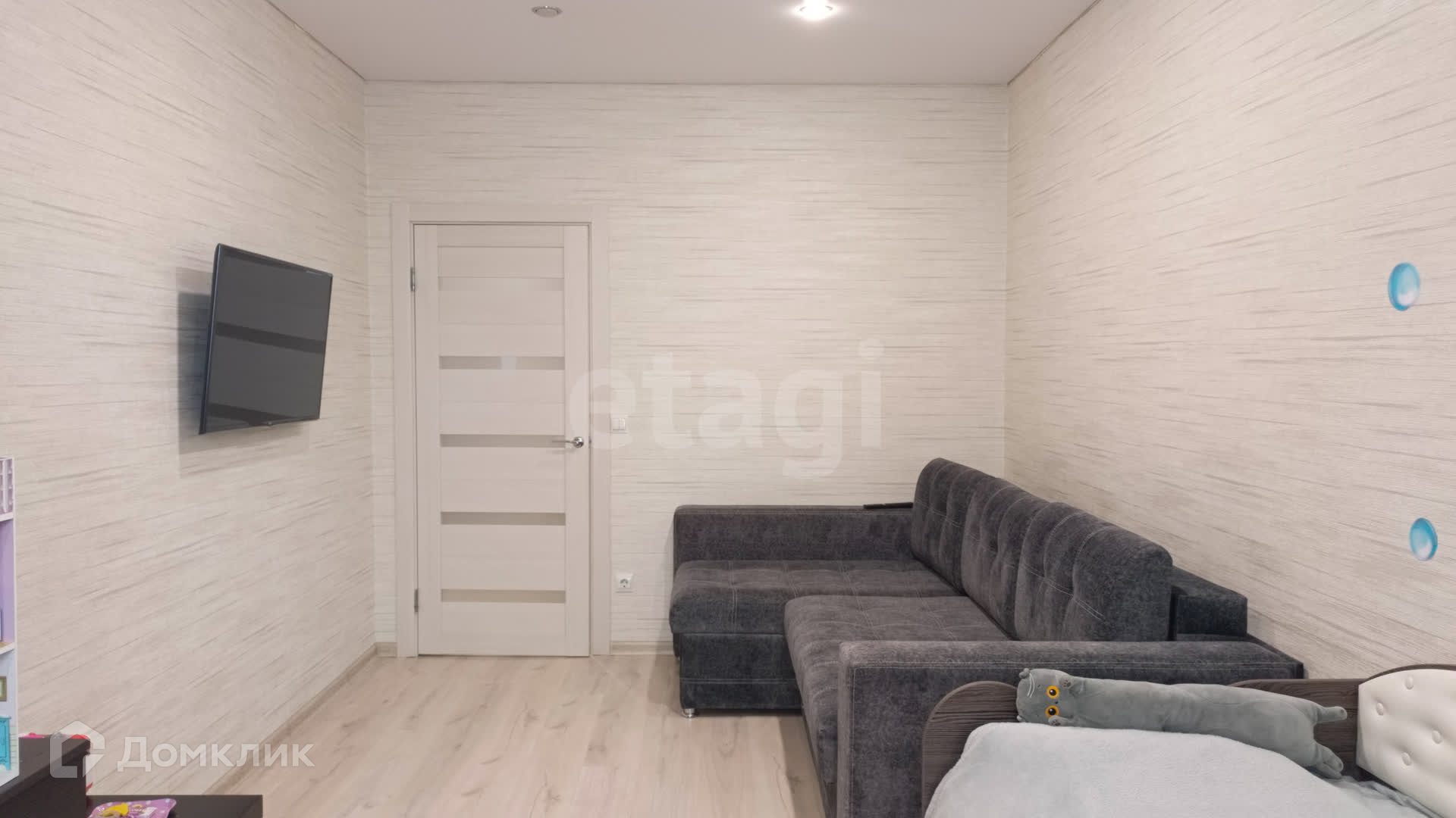 В квартире установлен кондиционер (в спальной комнате), теплый пол (в ванной), видеодомофон.
