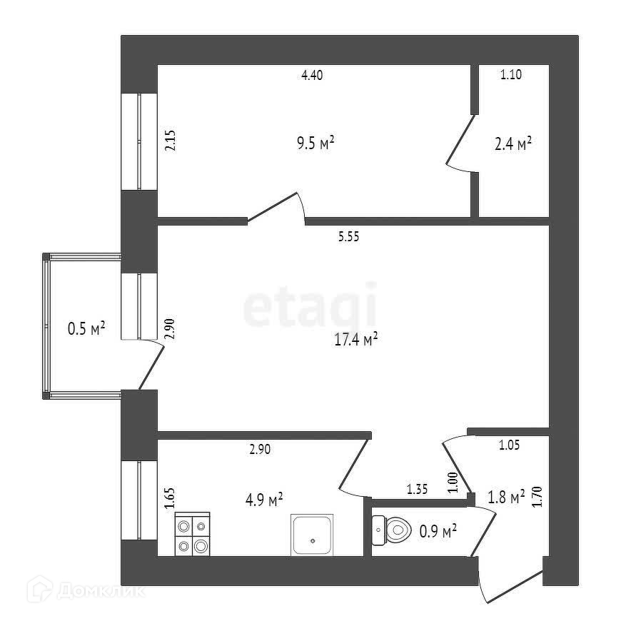 Площадь кухни 5 м2
