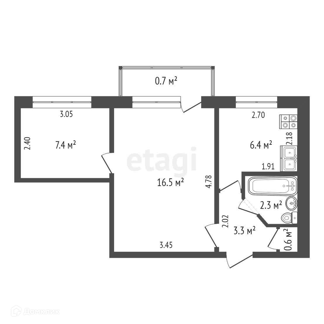 Балкон, лоджия 1 балкон