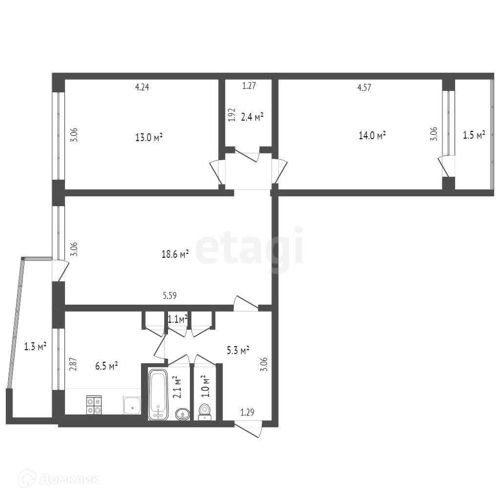 Количество комнат 3