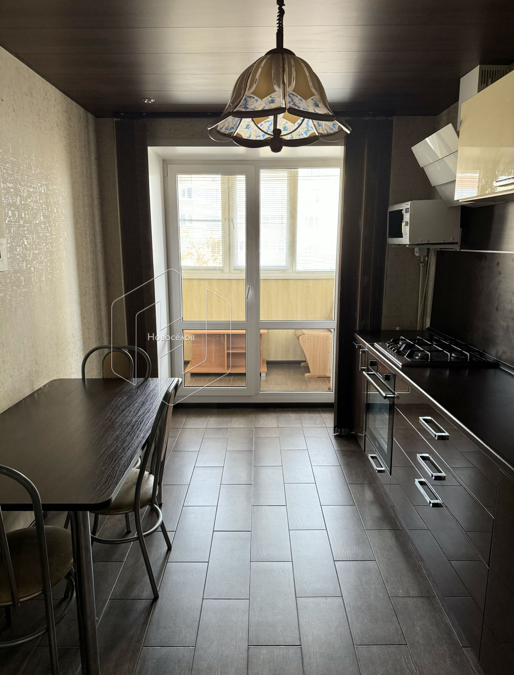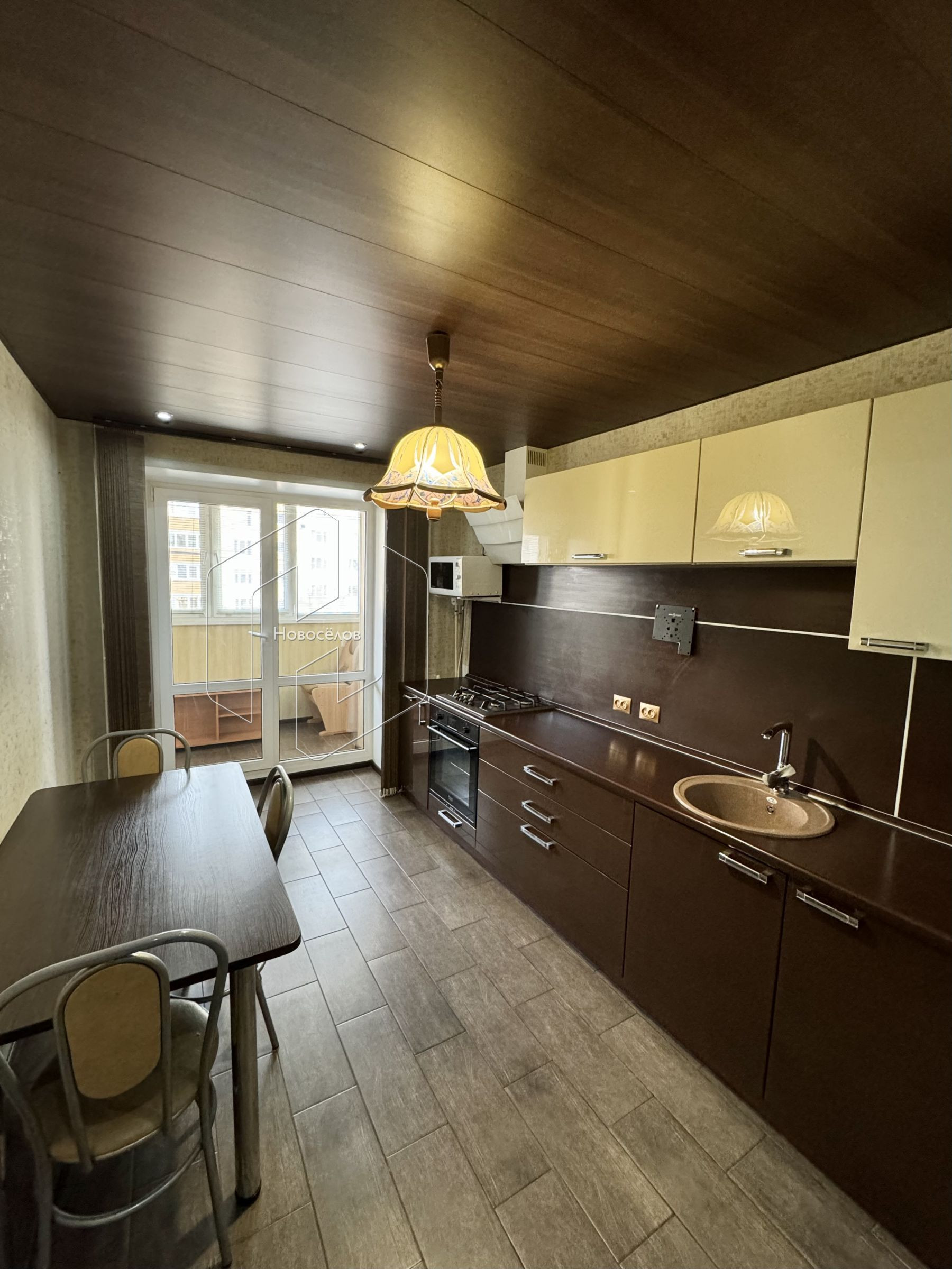 Сделан дорогой и качественный ремонт. В комнате постелен ламинат; на кухне, балконе и в прихожей - керамогранит. Установлены новые пластиковые стеклопакеты и биметаллические радиаторы.
