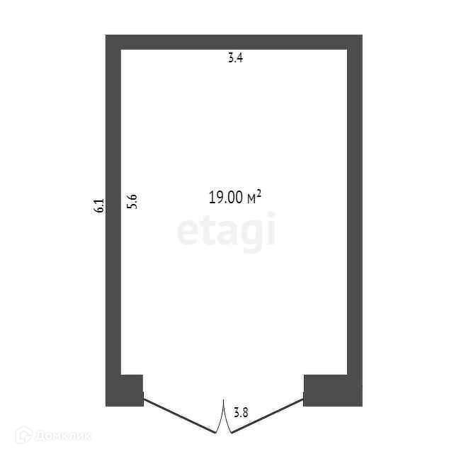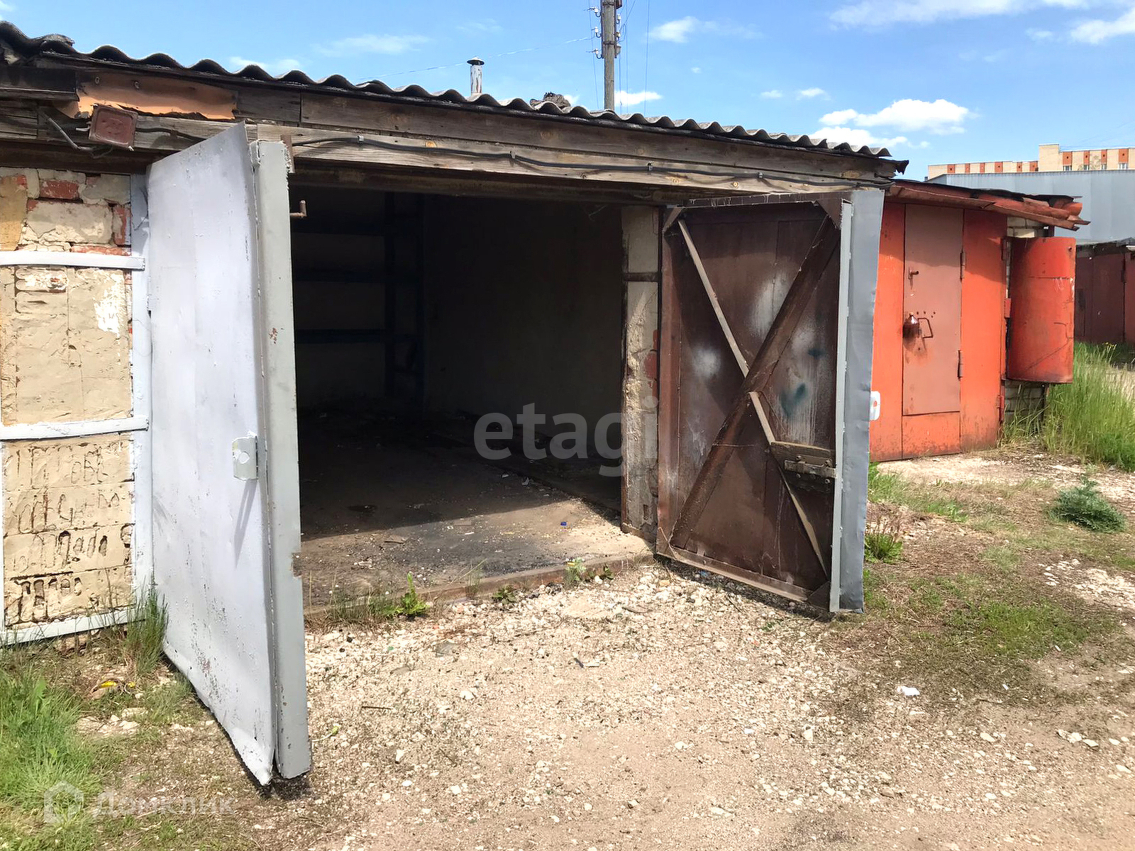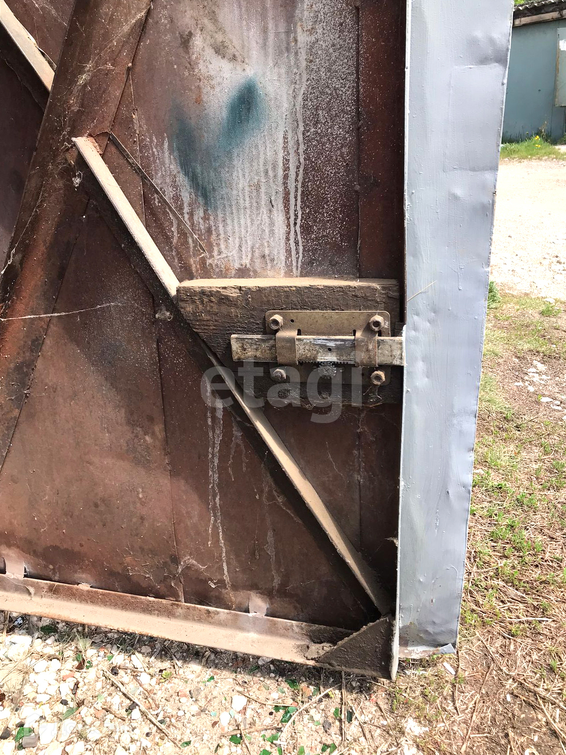 Площадь 19 кв.м (ширина 3,4, длина 5,6). Ворота металлические.