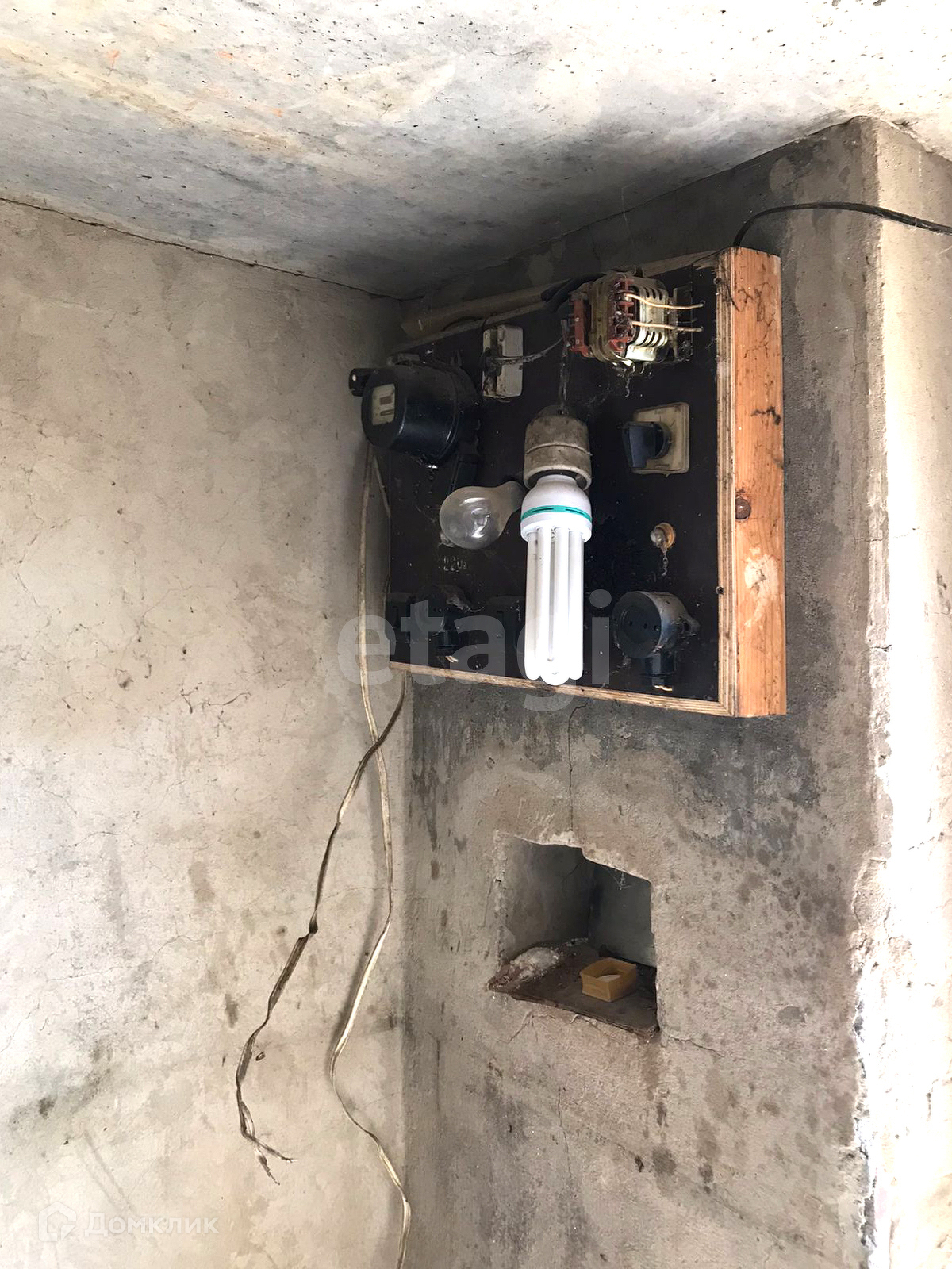 Электричество подведено. Оборудован стеллаж во всю стену.