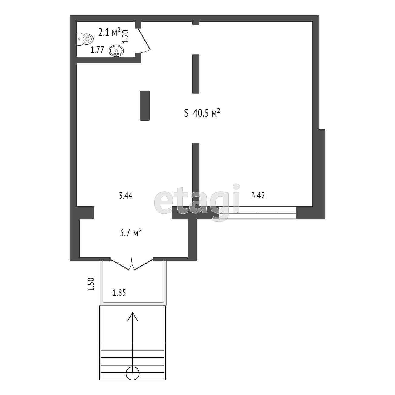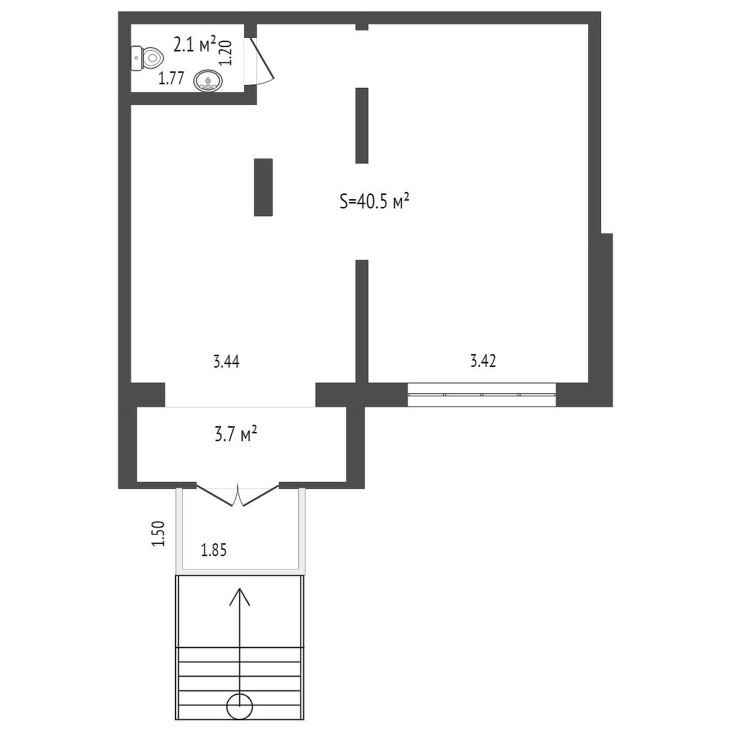 Общая площадь 41.2 м2