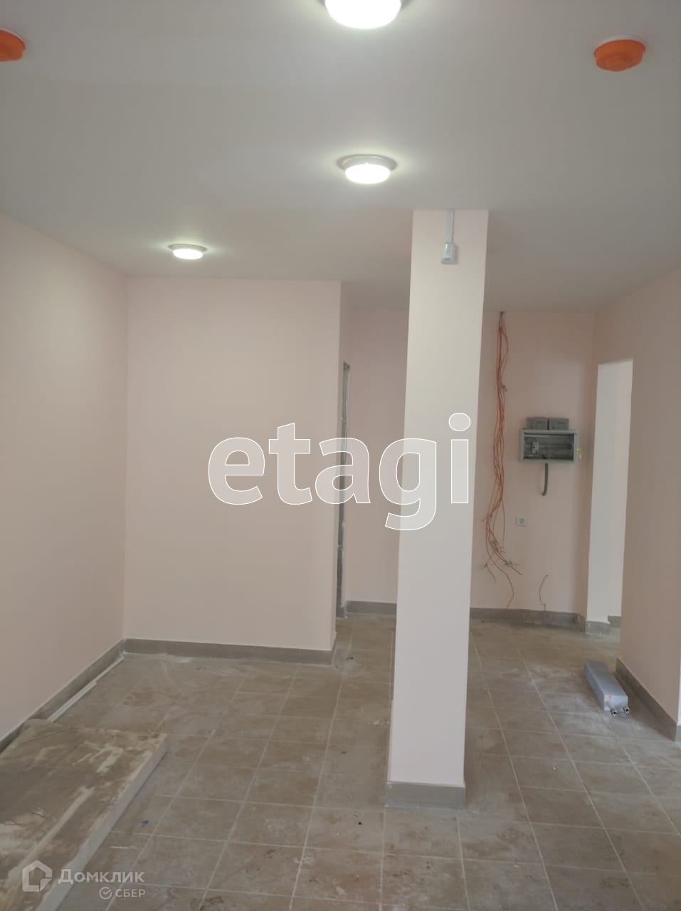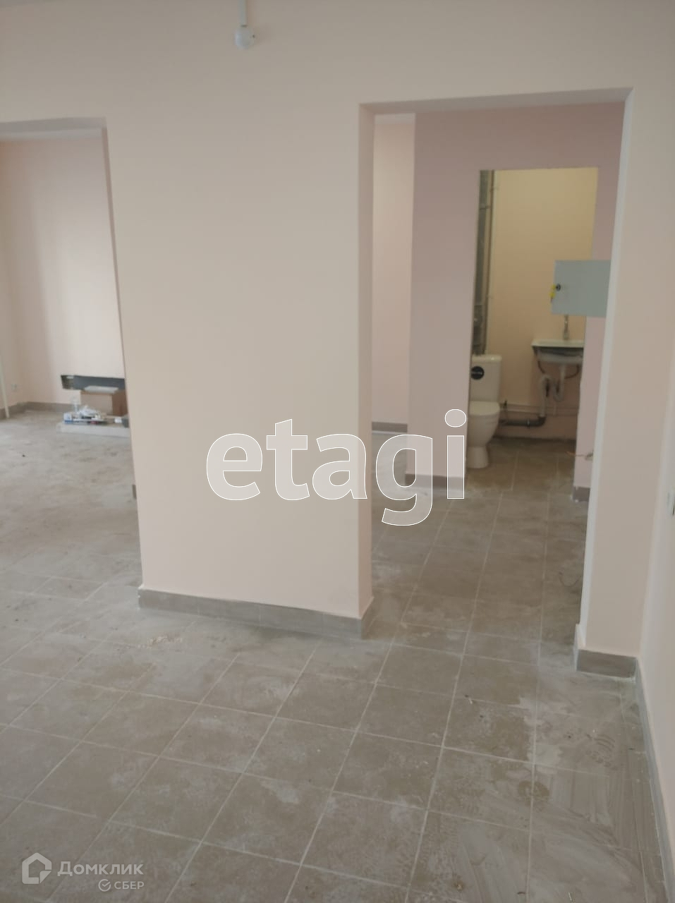 В помещении сделан ремонт, на полу плитка, стены выровнены и покрашены.