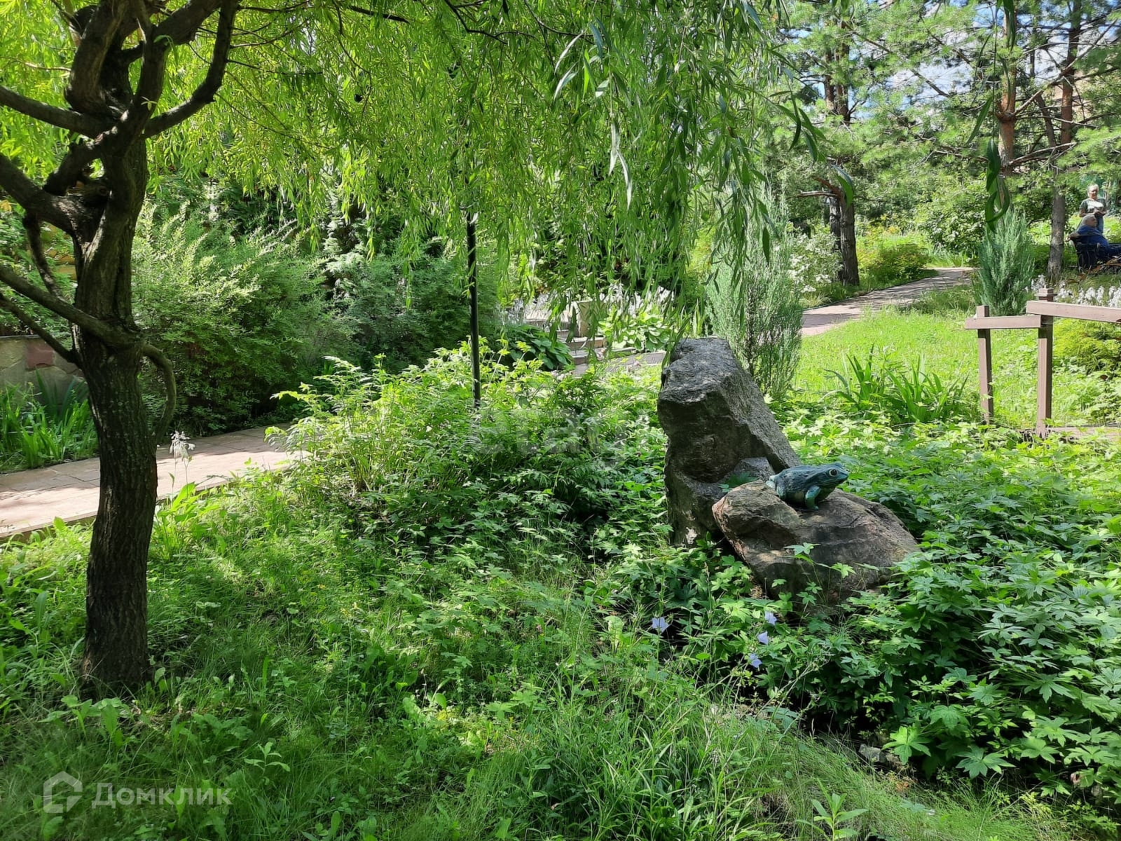 ландшафтный участок, включающий в себя деревья и кустарники более 420 единиц, в том числе плодово-ягодные – свыше 90 единиц, листопадные более 200 единиц, вечно зелёные более 130 единиц, искусственный пруд, арт-объекты, лавочки и иные элементы. Кирпичный комплекс казан-мангал для любителей приготовить шашлык.
