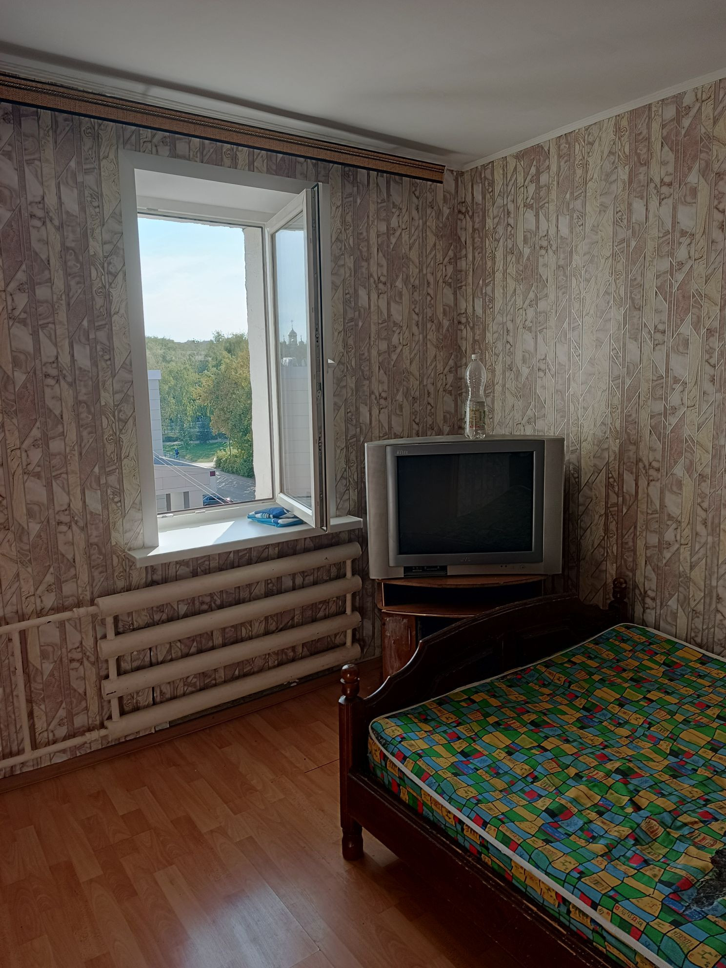 квартира находится в большом кирпичном доме. Двух комнатная квартира общей площадью 48,1, санузел раздельный, большая прихожая, два балкона. Из мебели: диван, кровать двуспальная, из техники: холодильник, микроволновка, стиральная машина, телевизор. Около дома школа, магазины, через дорогу парк, прямо в доме есть художественная школа, во дворе и около дома есть парковка для машин, также есть детская площадка.
